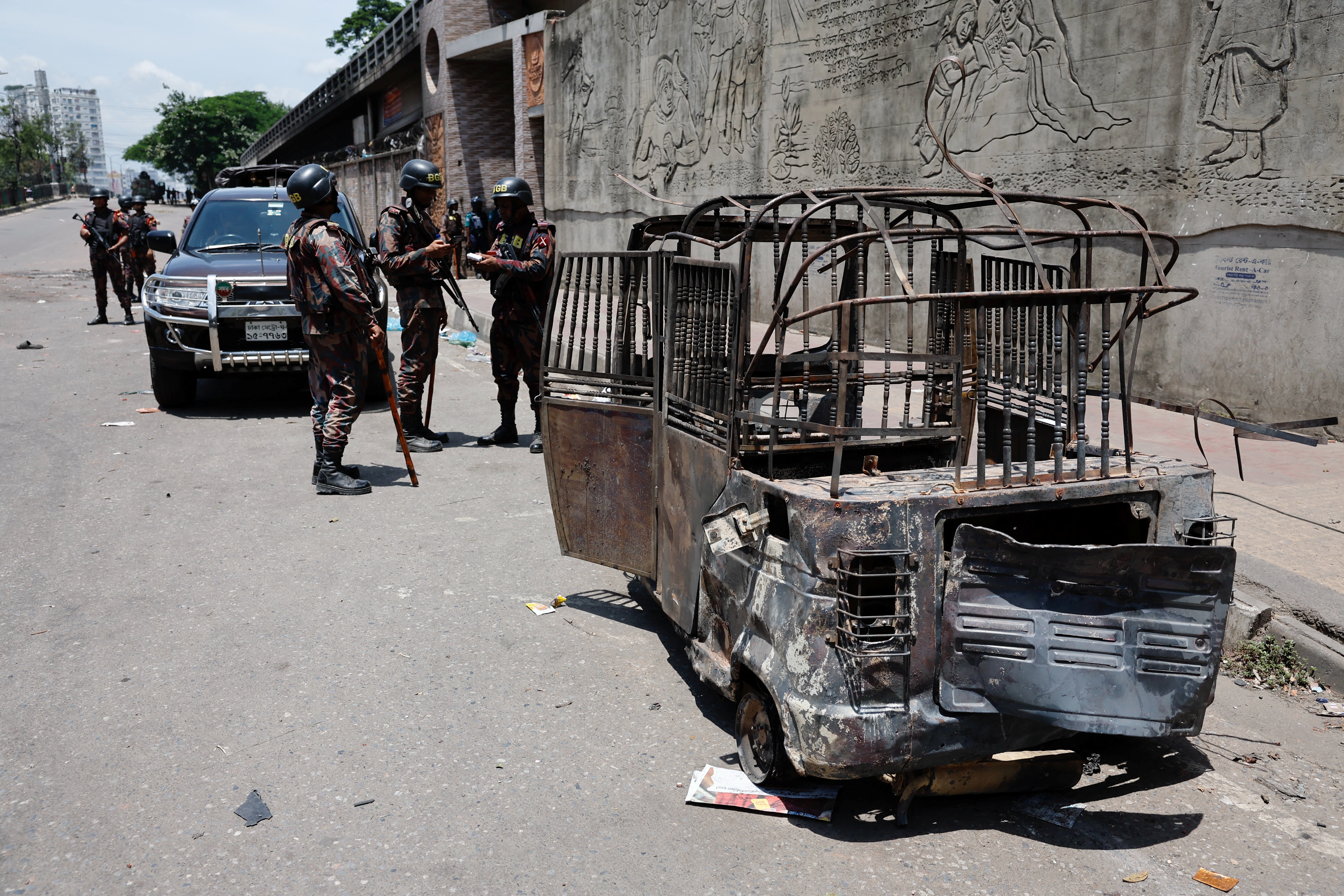 随着死亡人数不断攀升,警方无法控制抗议活动,哈西娜政府实施了全国宵禁并部署了军队。