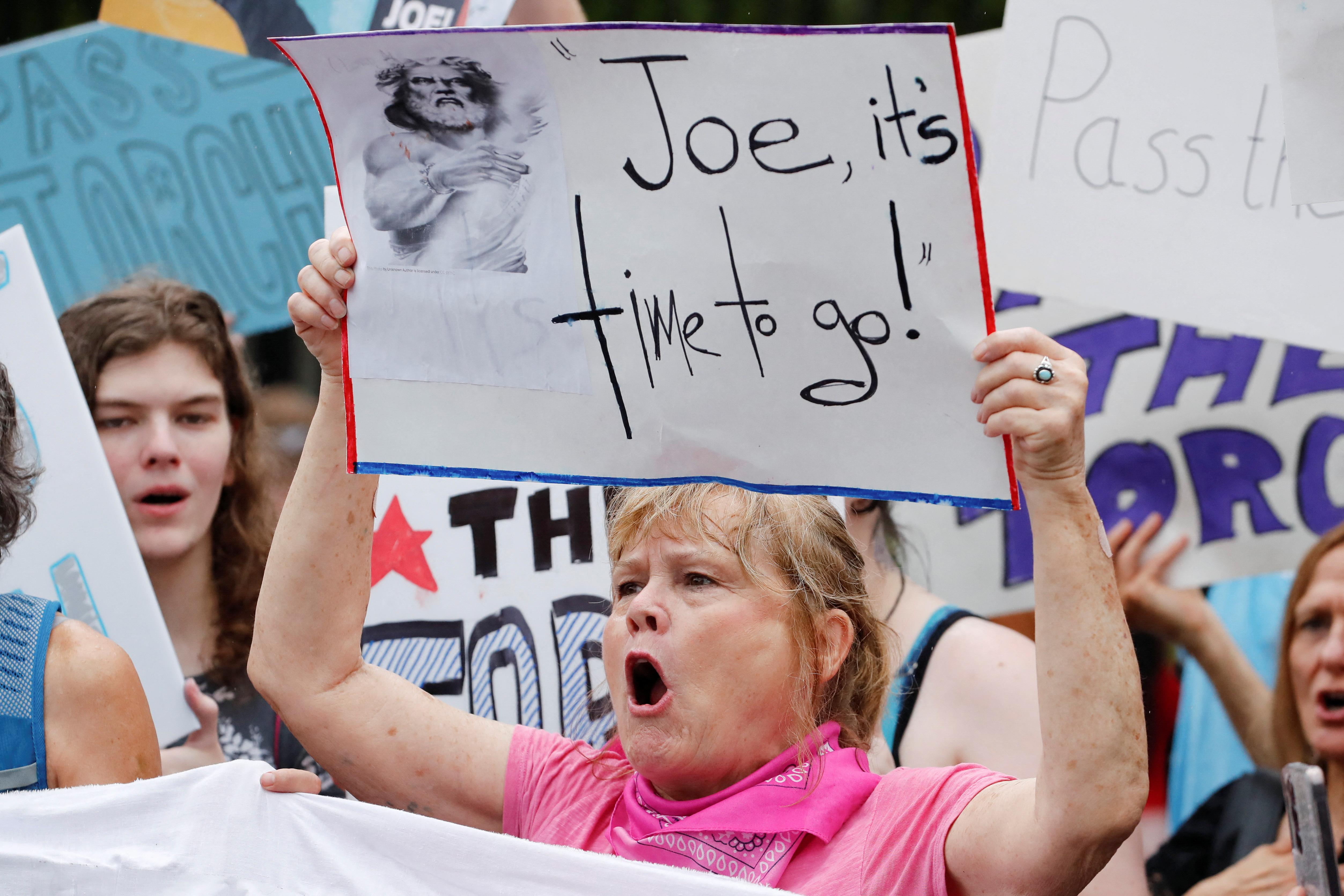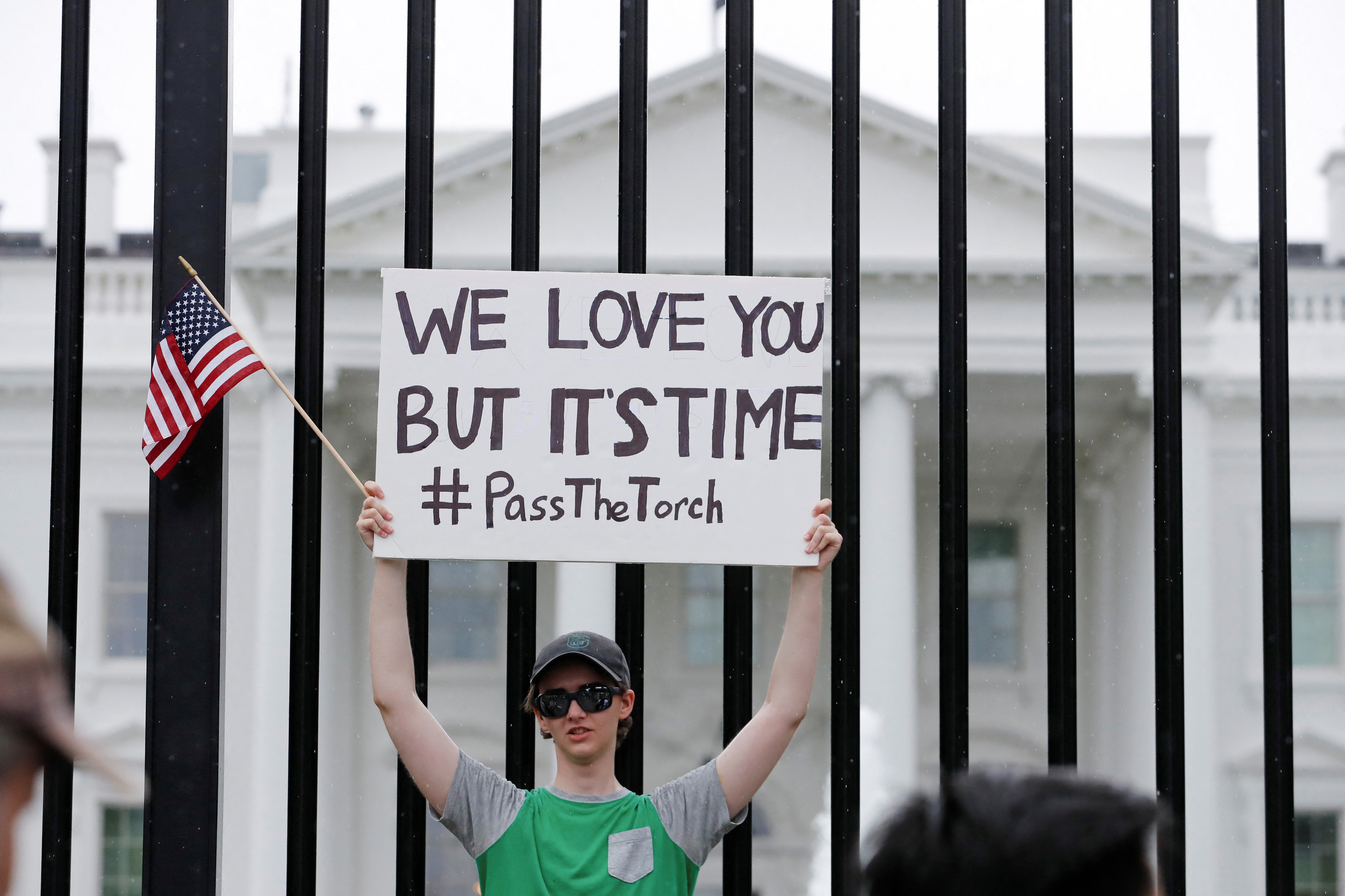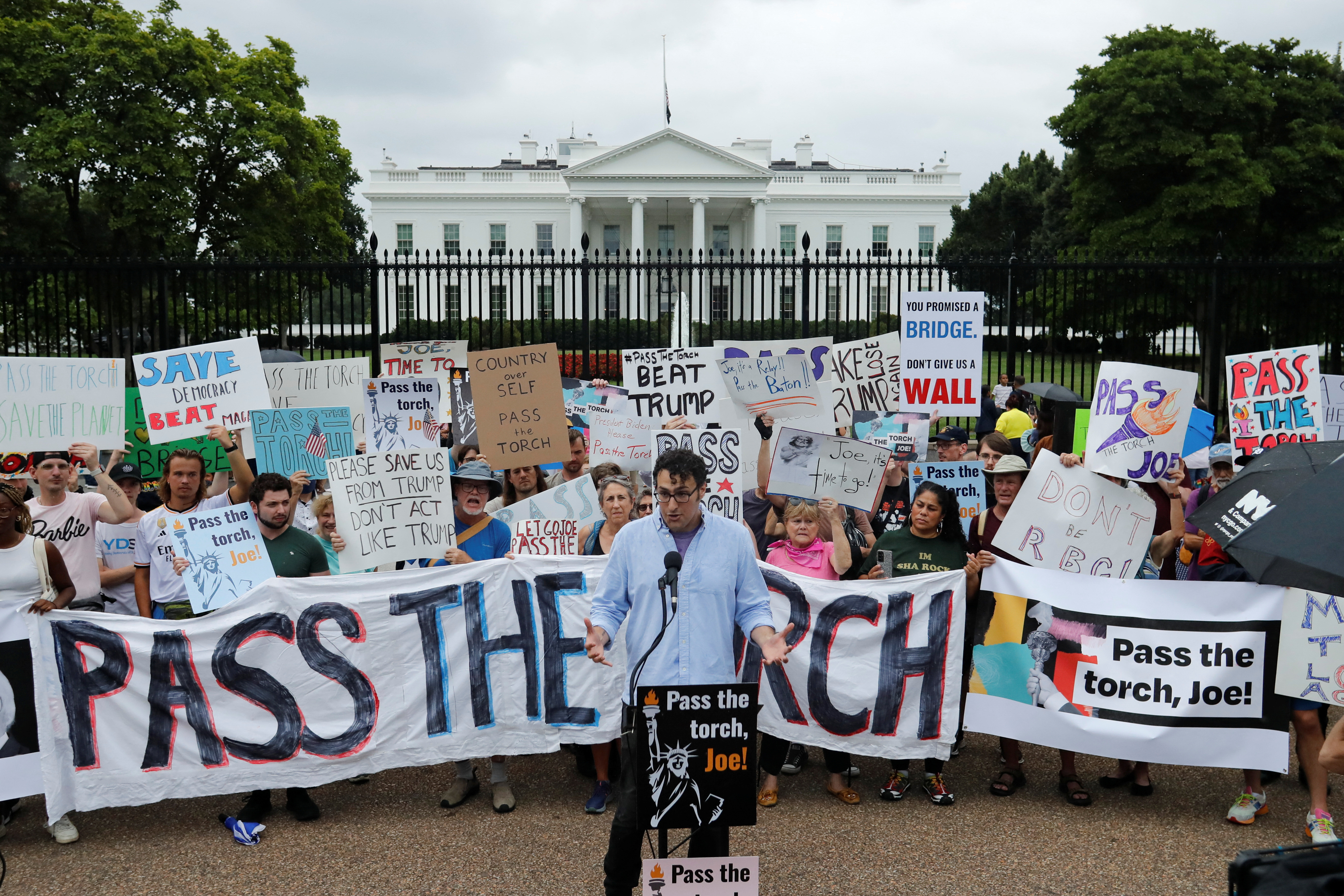 第1项,20岁的阿登·维斯在示威活动中要求拜登总统退出2024年竞选,华盛顿特区,2024年7月20日。路透社/艾莉森·贝利