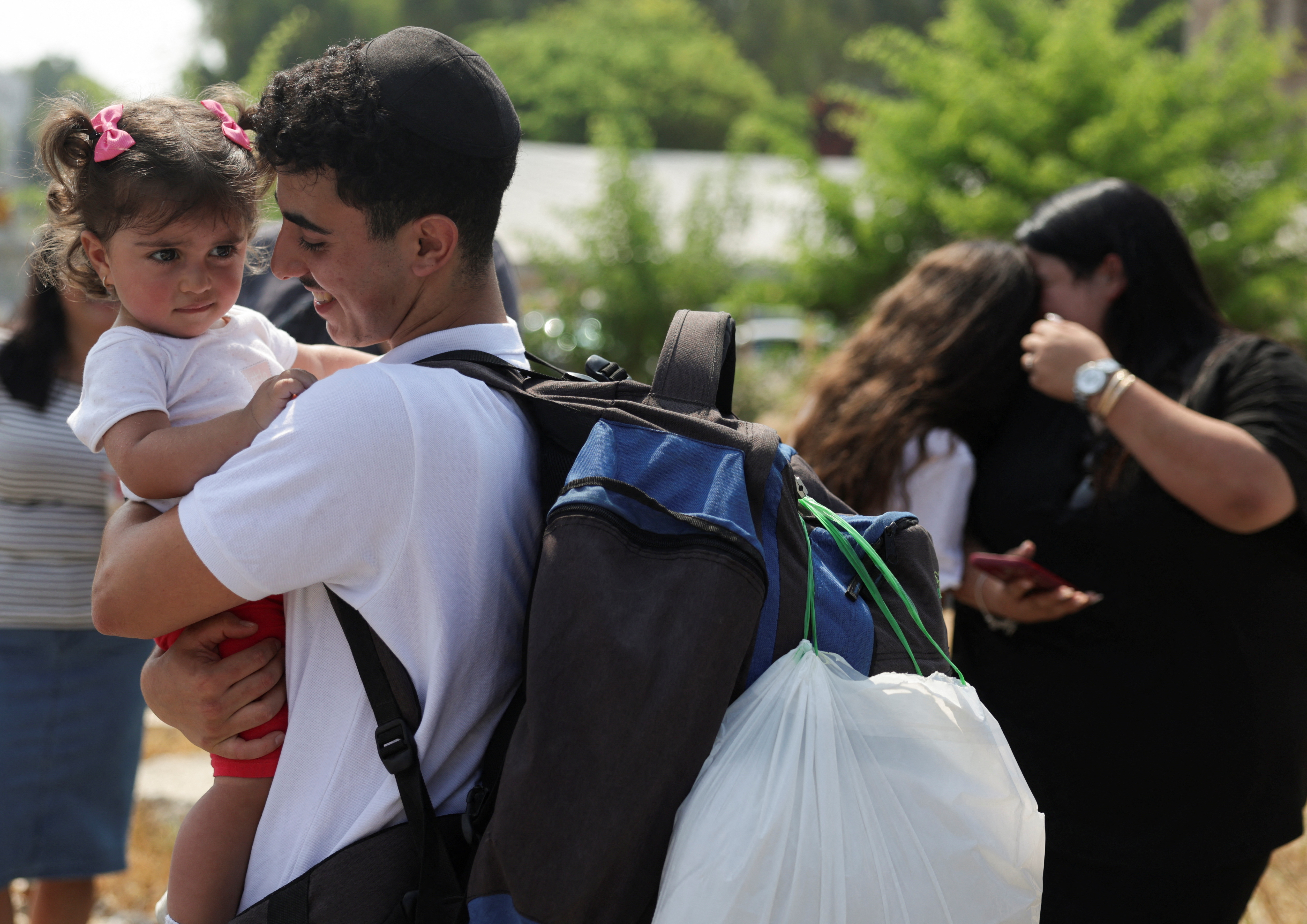 犹太正统教徒尼查·科恩(Netsach Cohen)在以色列国防军(IDF)中服役期间,与他的父亲乌里·科恩(Uri Cohen)告别,以色列哈马斯与以色列之间的冲突仍在进行中,2024年7月21日,以色列特拉维夫。路透社/里卡多·莫雷斯(REUTERS/Ricardo Moraes)耶路撒冷,7月21日(路透社) - 以色列军方周日向1000名极端正统派社区成员发出征召通知,旨在增强军队的力量,但可能进一步加剧宗教和世俗以色列人之间的紧张关系。