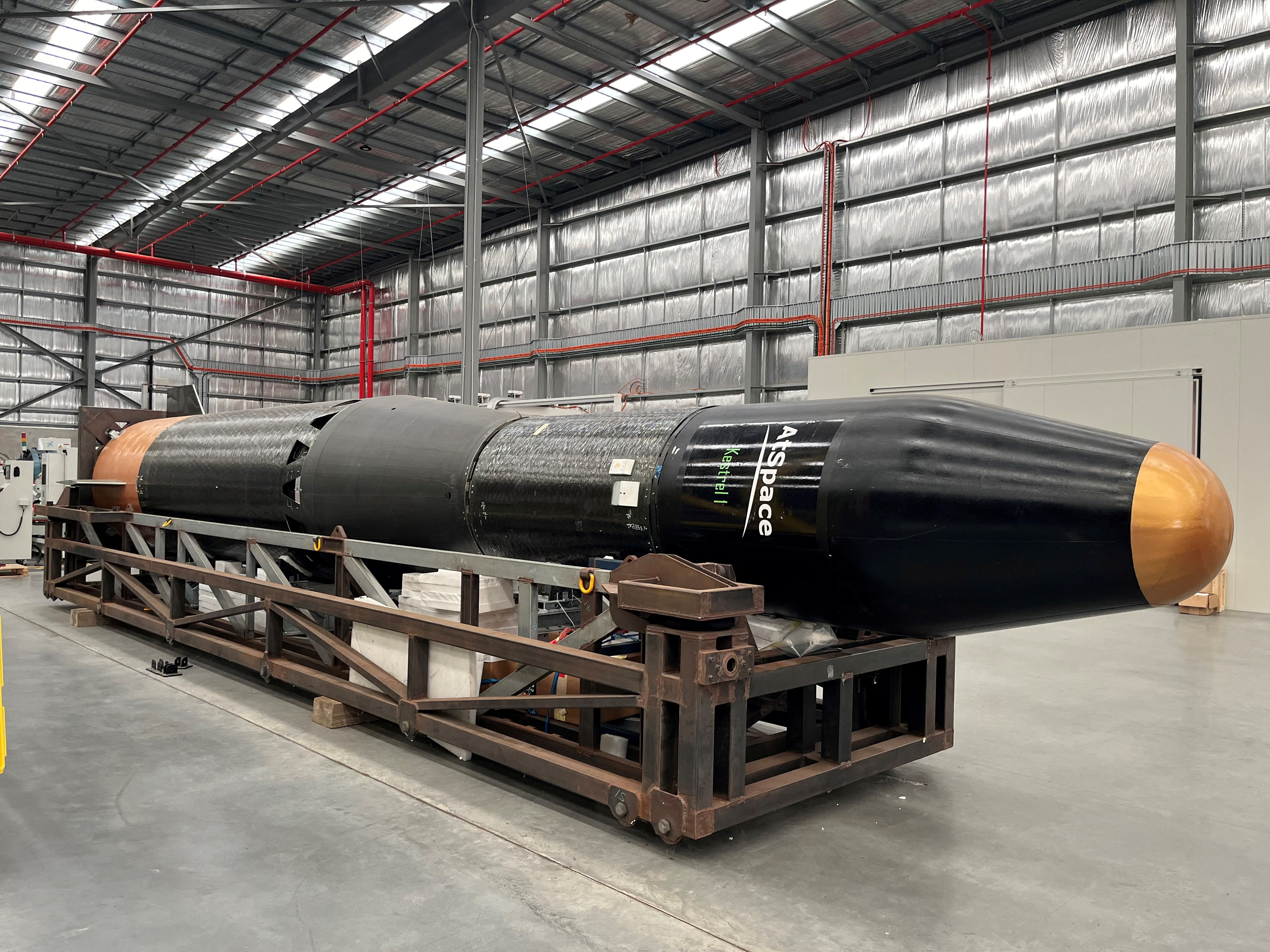 第1项,共2项 Kestrel I 亚轨道发射载具的视图,由 AtSpace 操作,AtSpace 是台湾火箭初创公司 TiSpace 的姐妹公司,位于澳大利亚昆士兰州威拉旺的 AtSpace 设施,2024年7月23日。tiSPACE/AtSpace/通过路透社提供