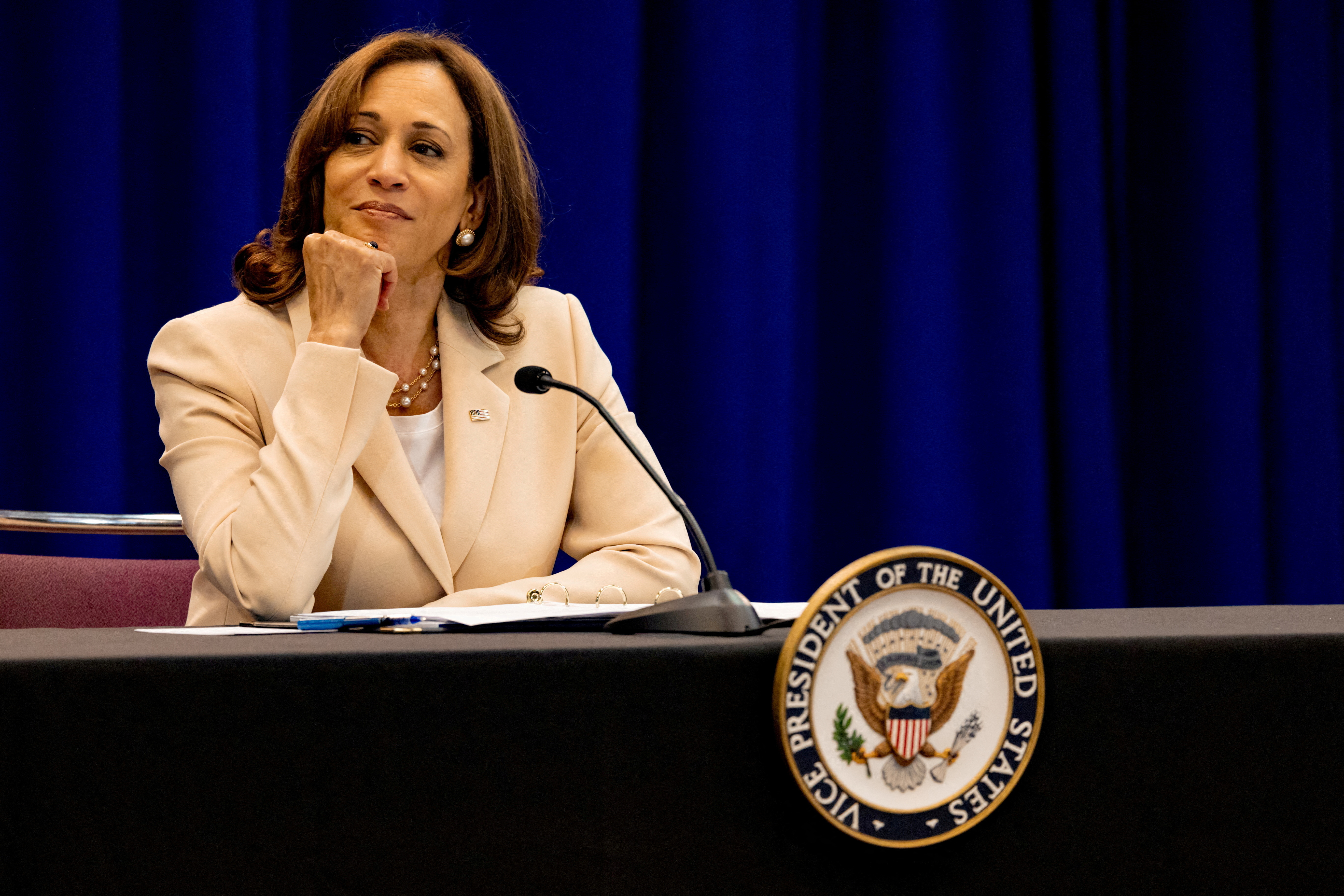 美国副总统卡马拉·哈里斯于2024年7月25日在华盛顿特区白宫内艾森豪威尔行政办公大楼与以色列总理本杰明·内塔尼亚胡会面,REUTERS/内森·霍华德