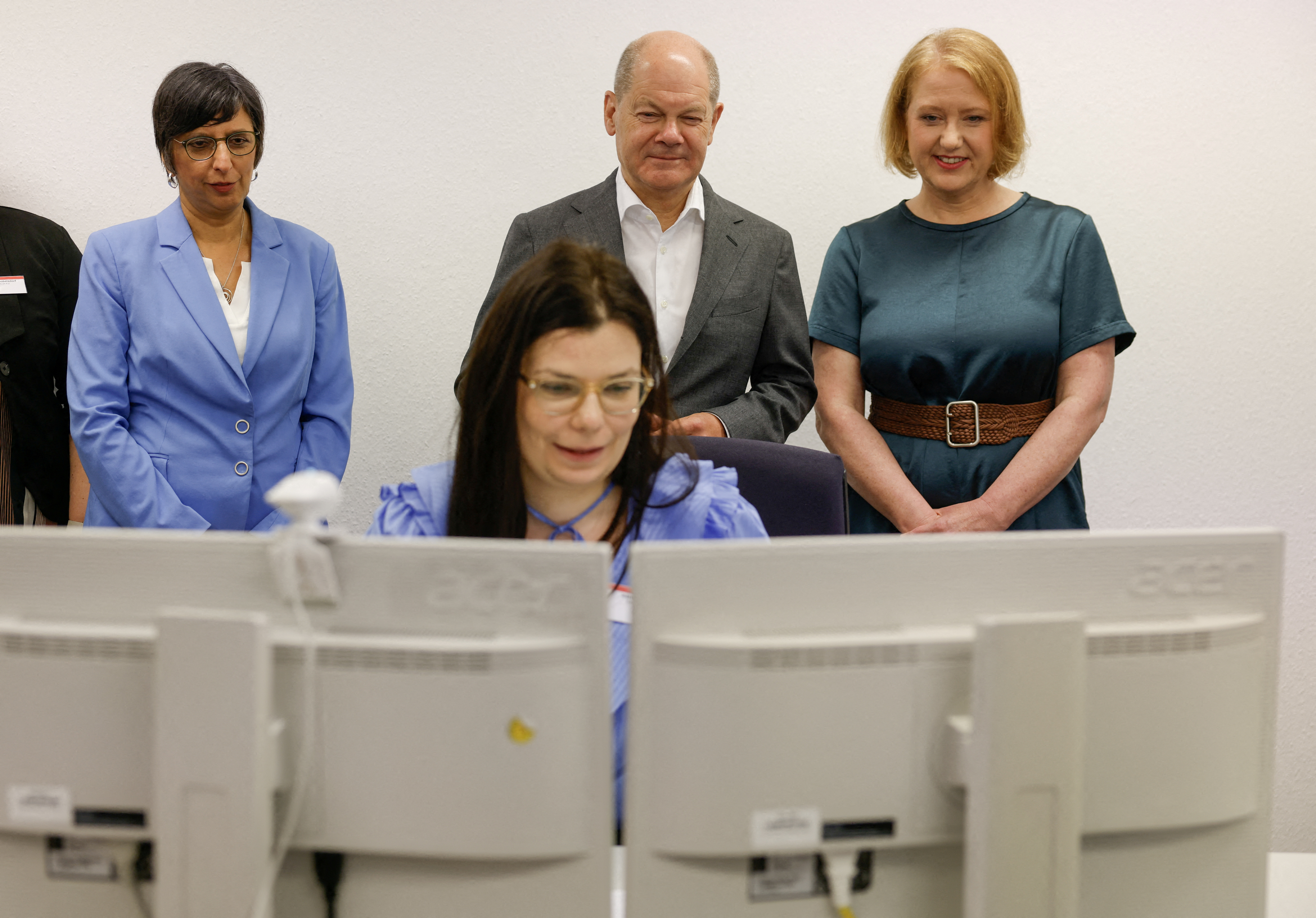 德国总理奥拉夫·肖尔茨、德国家庭事务、老年人、妇女和青年部长丽莎·保斯,以及家庭中心主席瓦妮莎·阿胡贾在2023年6月19日访问柏林-布兰登堡家庭福利中心时观看团队负责人伊奥娜·乌尔里希在电脑上工作。ODD…阅读更多柏林,7月31日(路透社)——随着人口迅速老龄化,德国迫切希望寻找如何从享有最充裕闲暇时间的劳动大军中获得更多工作。但分析师表示,它忽视了一个重要的、未开发的资源:女性。
