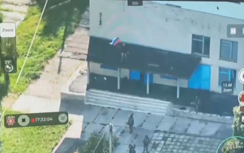 武装人员在俄罗斯库尔斯克地区的Vnezapnoe拆下悬挂在建筑上的俄罗斯国旗,此次事件发生在乌克兰军队入侵期间,视频截图来自2024年8月14日发布的社交媒体视频。视频由路透社获得/通过路透社莫斯科,8月15日(路透社)- 在乌克兰表示其军队正在深入俄罗斯境内进行闪电式入侵,旨在迫使莫斯科减缓在其他前线的推进后,俄罗斯于周四开始从其边境地区撤离数千人。
