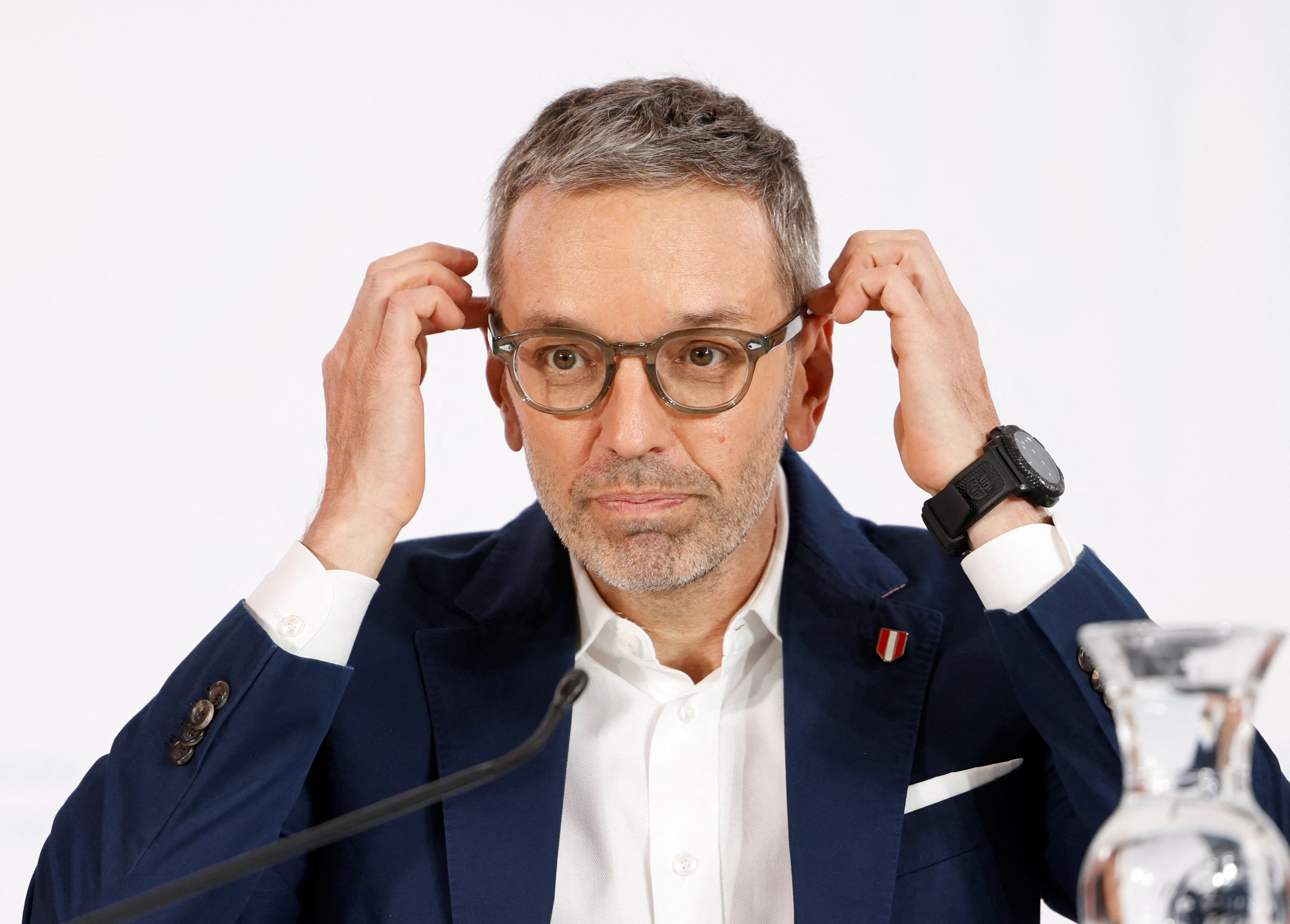 奥地利自由党(FPO)领导人赫伯特·基克尔在2024年8月21日于奥地利维也纳介绍选举计划时的表情。路透社/莱昂哈德·福格尔2024年8月21日(路透社)- 奥地利极右翼自由党(FPO)在民意调查中被认为是9月29日即将举行的全国大选的热门候选者,周三发布了其竞选宣言,提出了促进经济和遏制移民的措施。