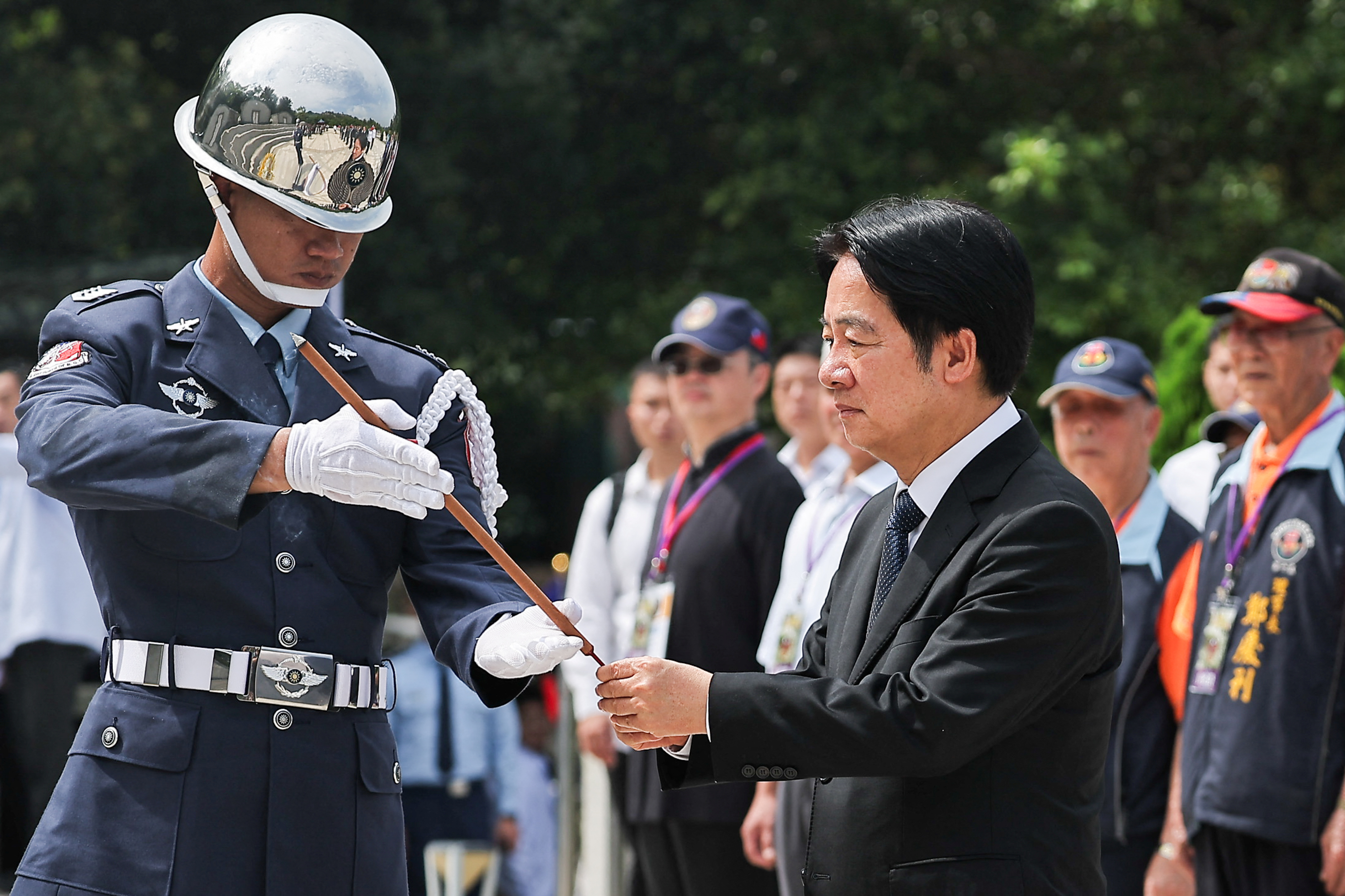 赖清德在与退伍军人及其家属交谈时表示,台湾政府将继续加强并增加军事支出,并将捍卫国家的主权。
