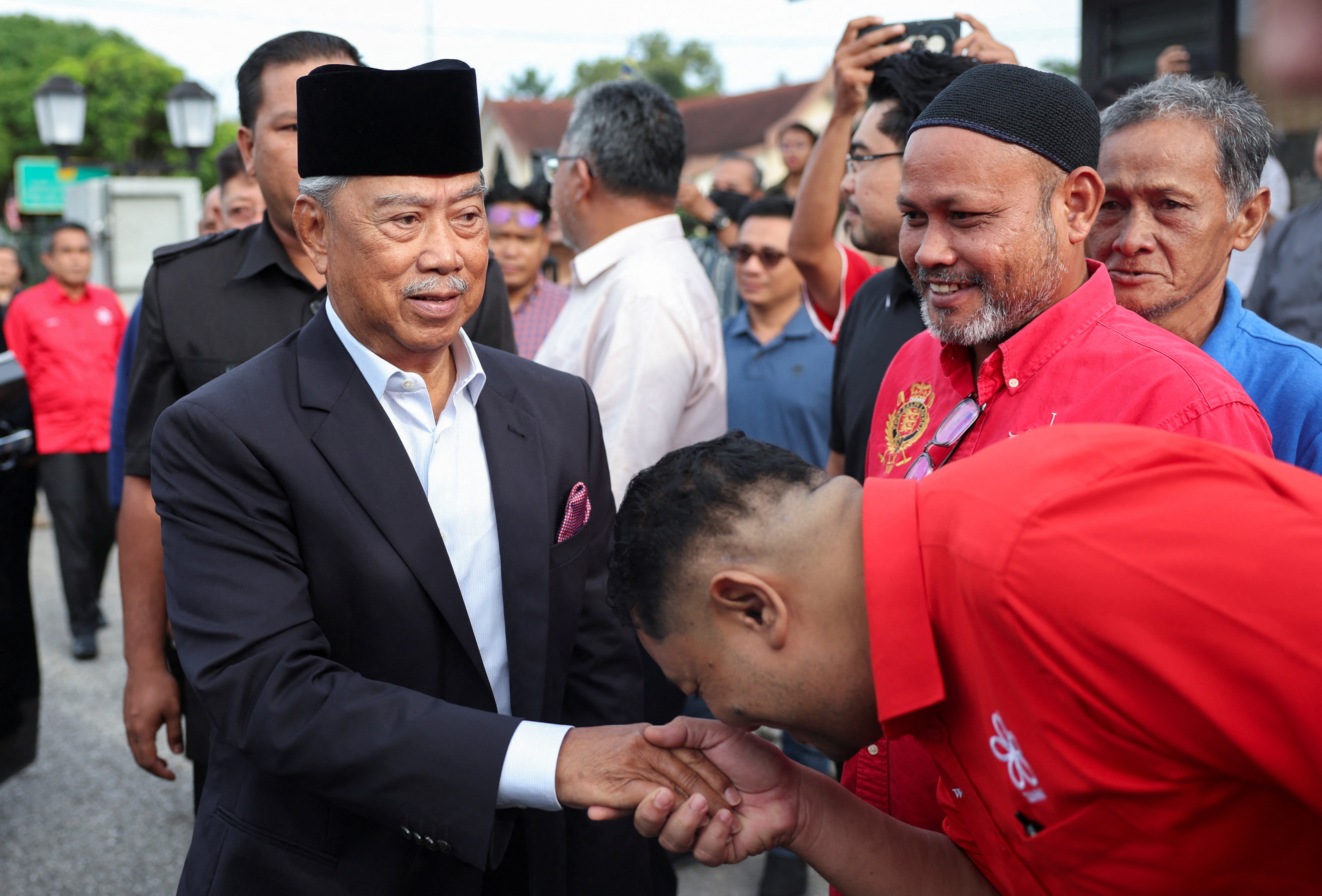 第1项,共6项 马来西亚反对派领袖和前总理穆希丁·亚辛在2024年8月27日离开马来西亚瓜穆桑会审法院时挥手。路透社/哈斯努尔·侯赛因