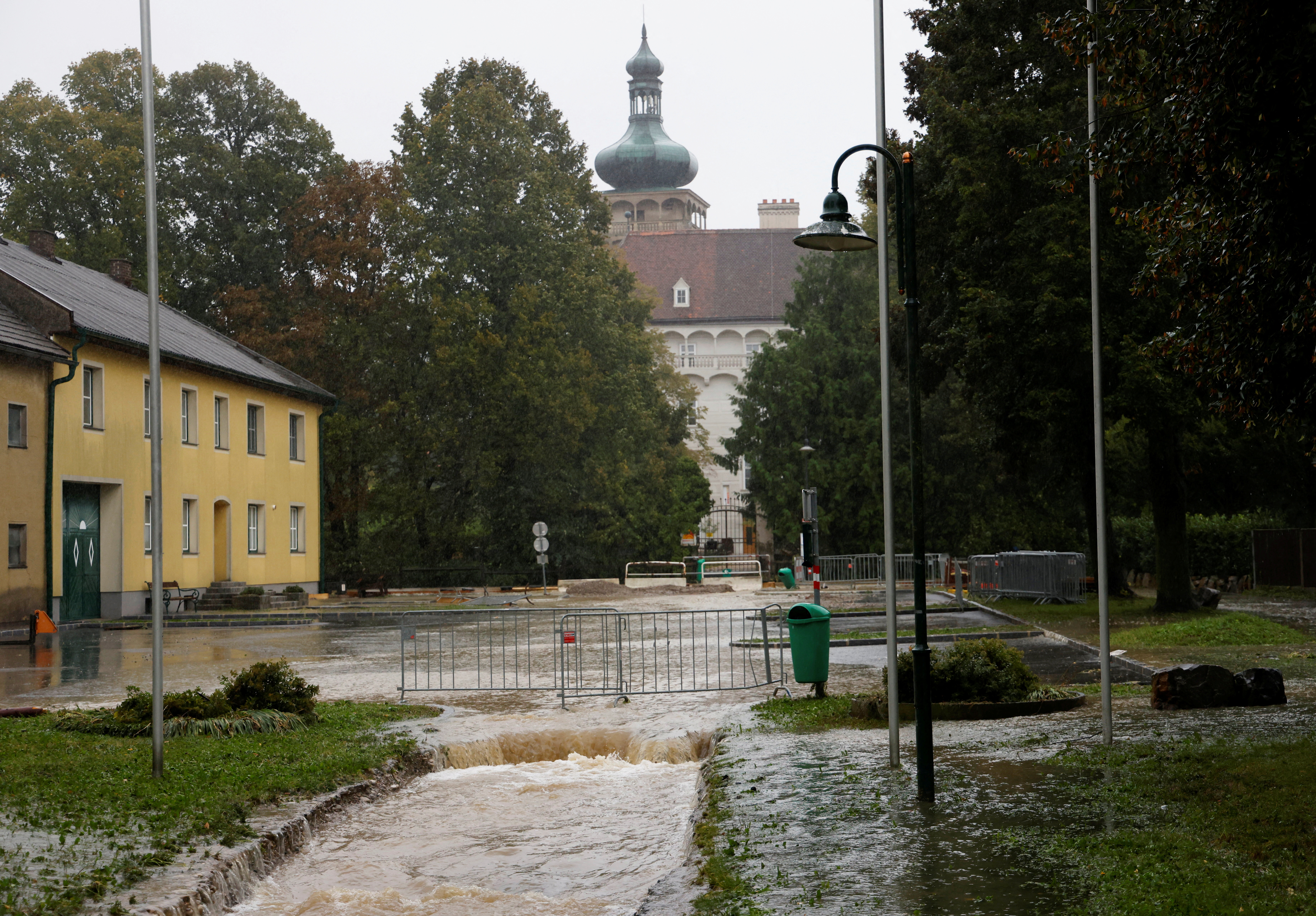 项目 1 共 5 在奥地利波滕多夫的洪水泛滥区,一辆汽车停在街道上,2024年9月16日。路透社/莱昂哈德·福格尔