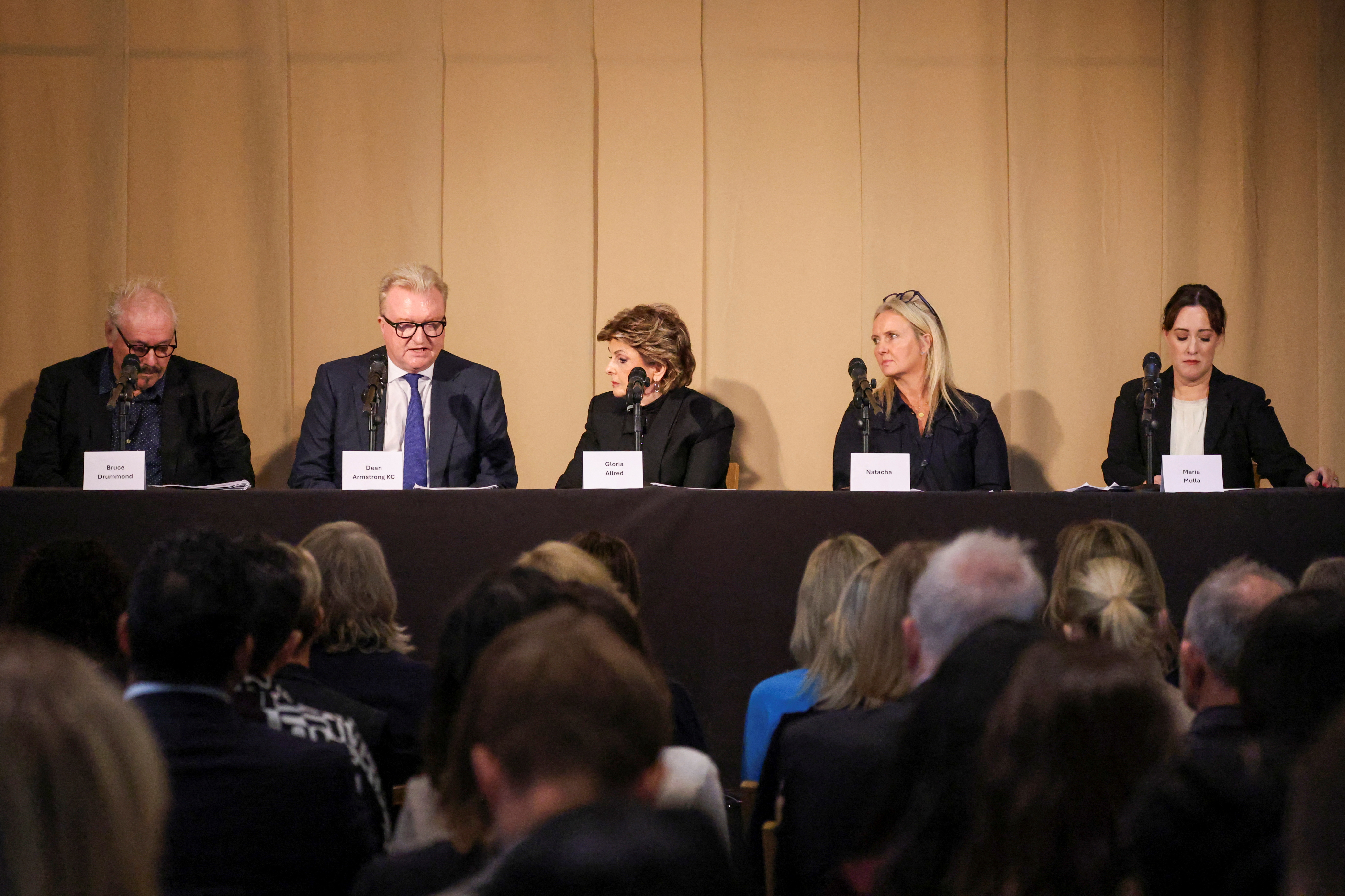 布鲁斯·德拉蒙德、迪恩·阿姆斯特朗、格洛丽亚·阿尔雷德、玛丽亚·穆拉和幸存者纳塔莎出席了关于BBC纪录片《阿尔-法耶德:哈罗德的掠食者》的新闻发布会,地点在英国伦敦,时间为2024年9月20日。路透社/米娜·金伦敦,9月20日(路透社)——已故埃及亿万富翁穆罕默德·阿尔·法耶德在他位于伦敦的百货商店哈罗德性虐待女性员工,强迫她们进行医疗检查,并威胁如果她们试图投诉将会面临后果,涉嫌受害者的律师在周五表示。