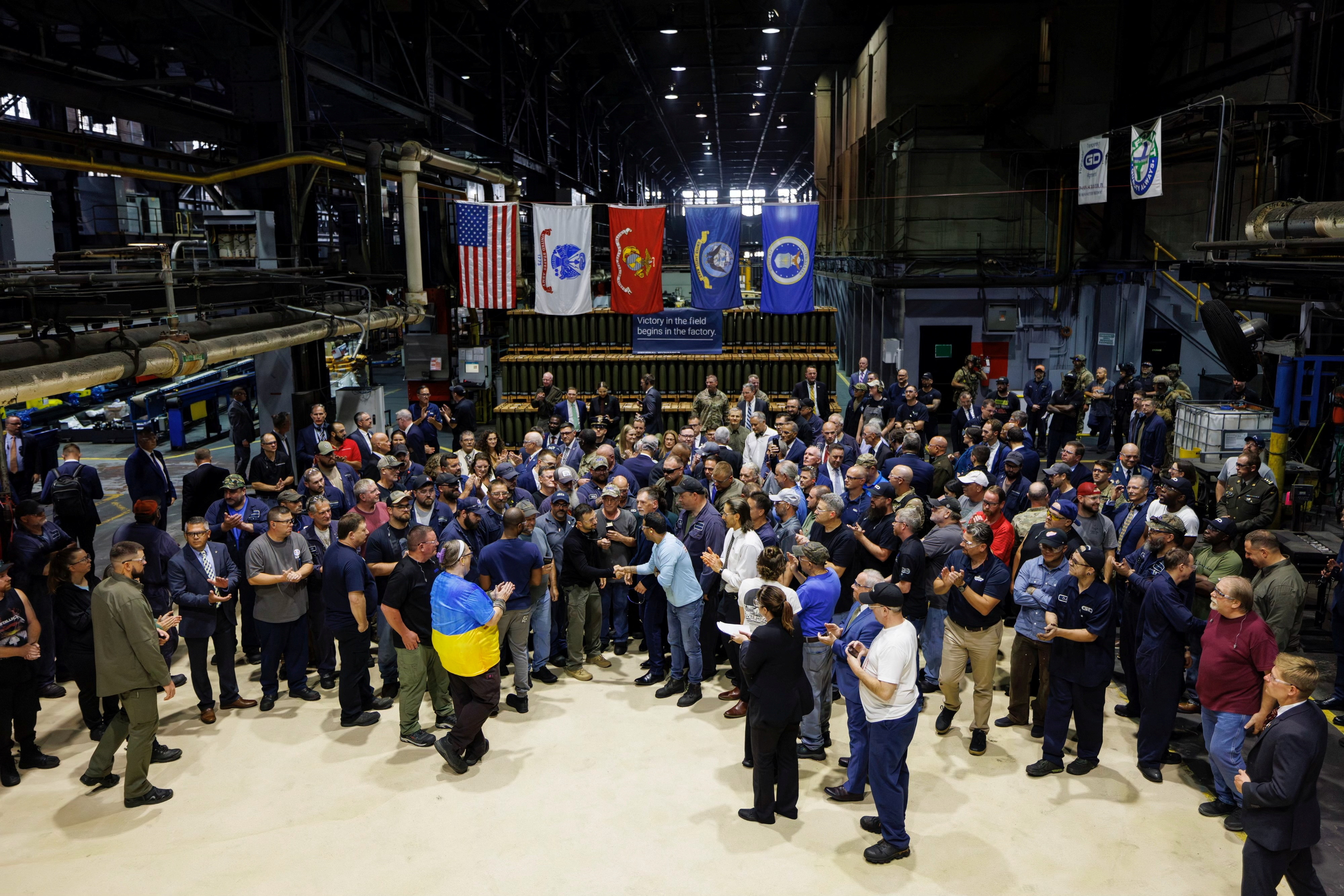 项目1,共4个 乌克兰总统弗拉基米尔·泽连斯基于2024年9月22日访问美国宾夕法尼亚州斯克兰顿的斯克兰顿军火厂。 共同体媒体服务/通过路透社提供