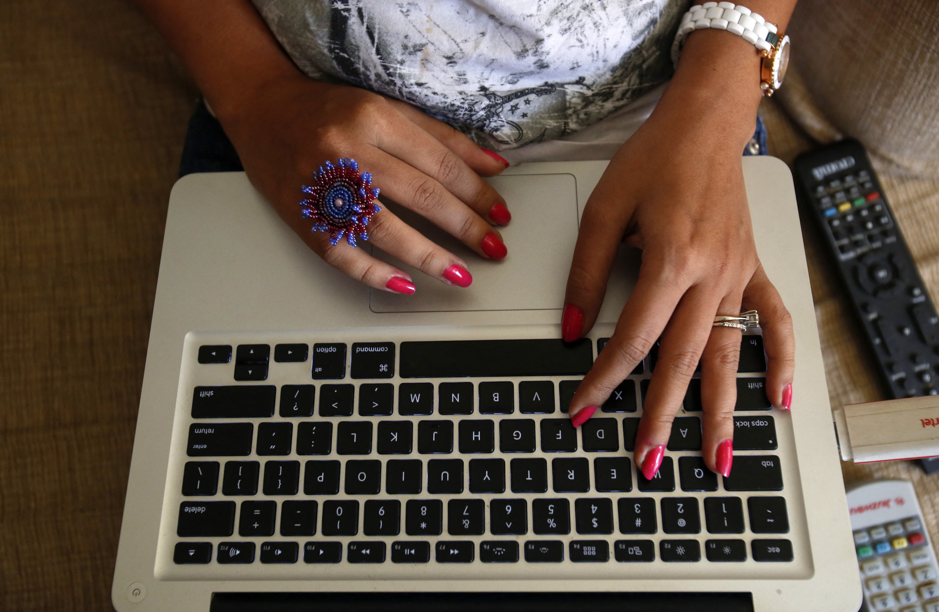 第1项,共2项 一位女性的手在孟买使用笔记本电脑,2013年1月22日。路透社/维韦克·普拉卡什/档案照片