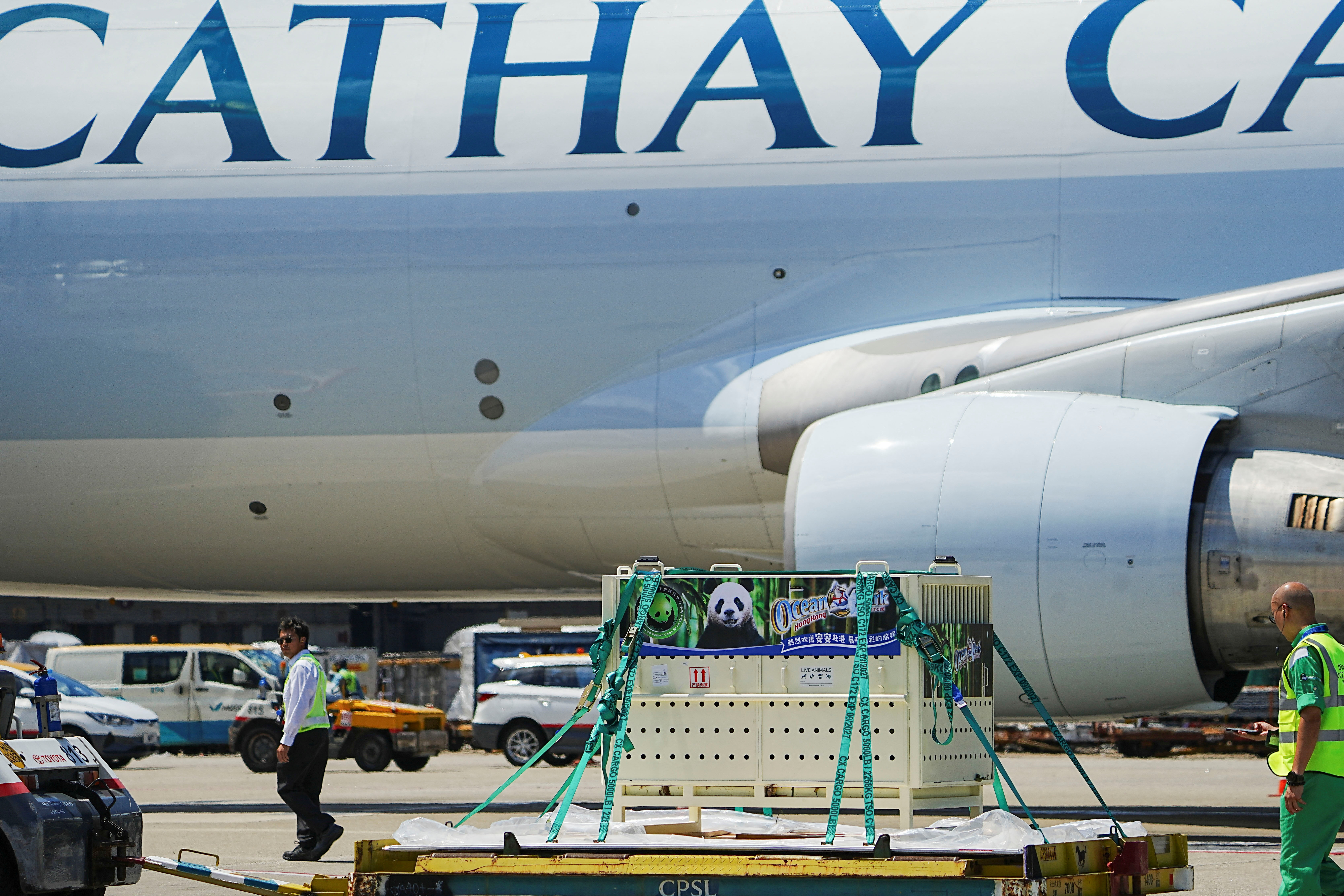 项目1,共5项 安安,一只大熊猫,作为中国的礼物抵达香港国际机场,迎接中国第75个国庆日,地点:香港,中国 2024年9月26日。路透社/林逸