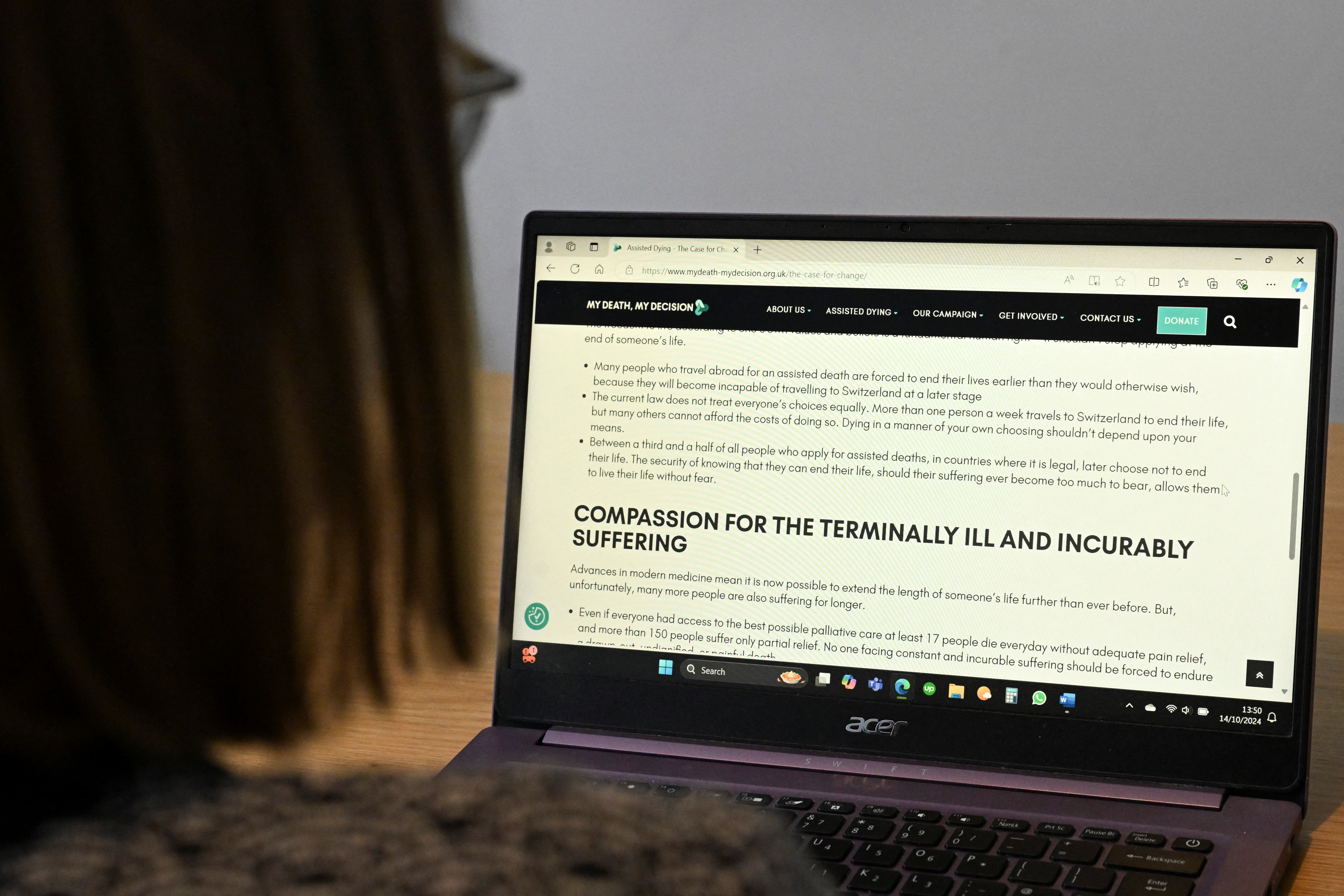 第1项,共5项 索菲·科雷瓦尔,2022年被诊断为多发性硬化症,2024年10月14日在英国布里斯托尔的家中浏览“我的死亡,我的决定”网站。路透社/贾米·乔伊