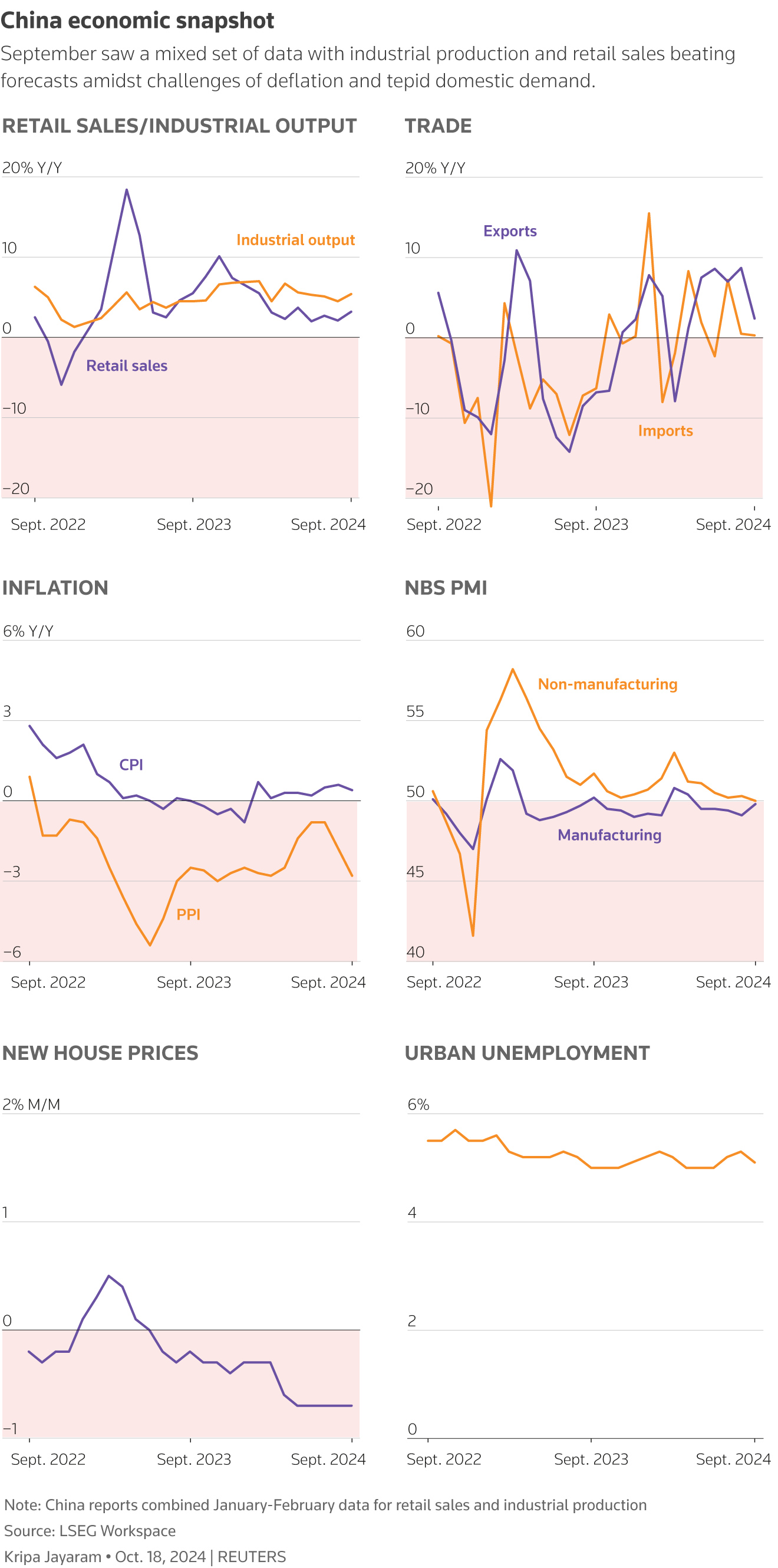 政策制定者可以对超过预期的 工业产出和零售销售数据 感到一些安慰,但房地产行业仍然显示出明显的疲软,并强调市场对更多支持措施的呼声。“考虑到房地产和家庭部门的结构性弱点仍然在很大程度上没有得到解决,我们会淡化九月份好于预期的主要经济指标的重要性,”牛津经济研究院经济学家贝蒂·王表示。