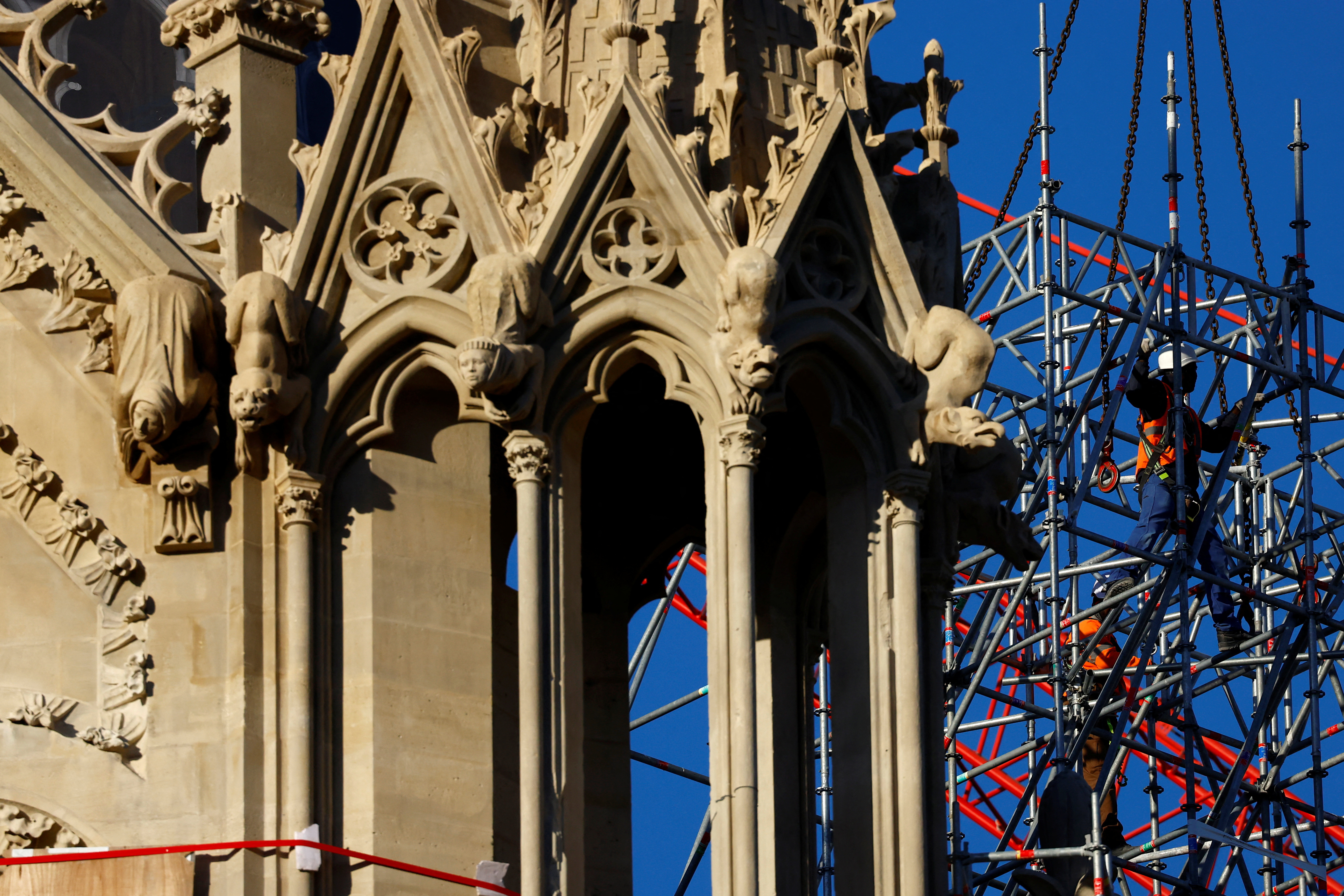 巴黎圣母院在火灾严重损坏其屋顶和尖塔后正在进行重建。总统埃马纽埃尔·马克龙承诺在五年内重建巴黎圣母院,并获得了大量私营部门的财政支持。