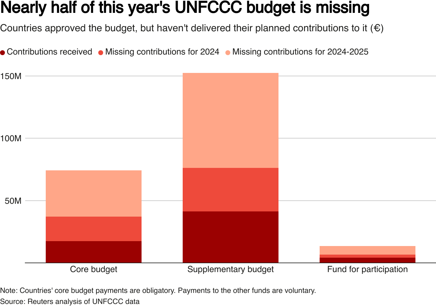 路透社的分析显示,在过去几年中,这些问题通常在十月之前得到解决——而今年的延迟在UNFCCC历史上是最严重的,整体预算仍然缺失的金额最多。