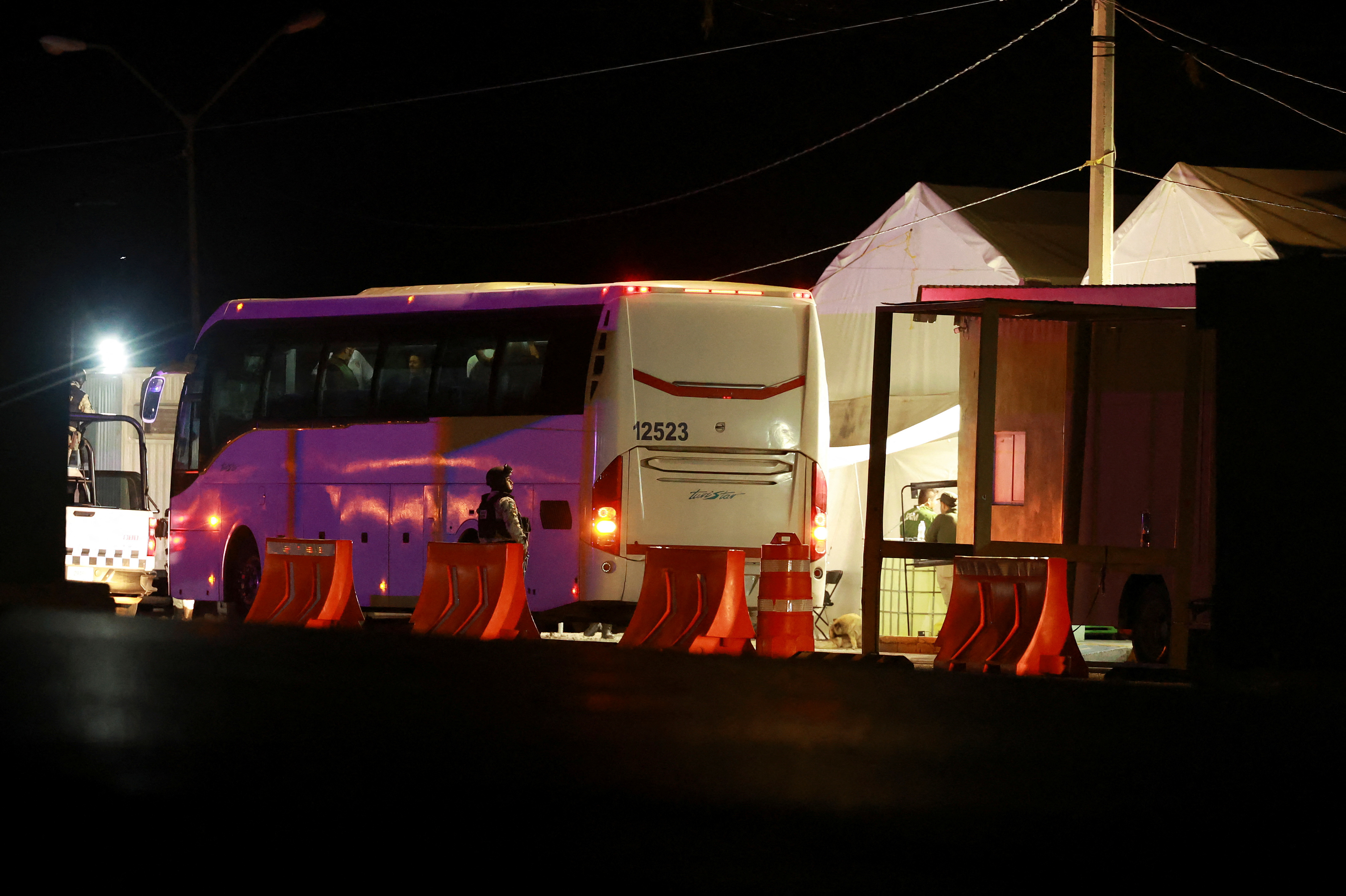 移民在墨西哥华雷斯市郊的一个军事检查站内,等待被墨西哥国家移民局(INM)和墨西哥国民警卫队的成员转移到墨西哥南部,时间是2024年9月24日。路透社/何塞·路易斯·冈萨雷斯墨西哥华雷斯市,2024年10月28日(路透社)- 在距离边境城市华雷斯市约25英里(40公里)的墨西哥沙漠中的一个偏远军事检查站,移民官员在九月的一个炎热夜晚将数十名移民强行装上了一辆驶向南方的巴士。