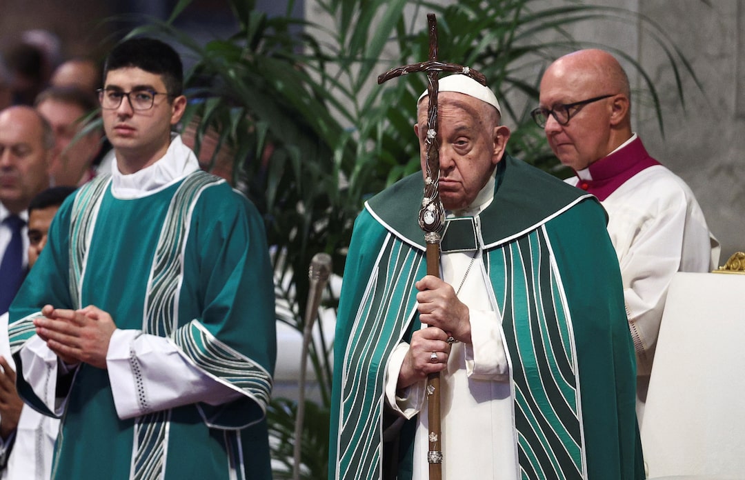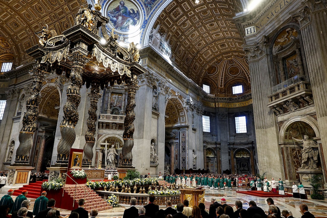 第1项,共3项 教皇方济各在梵蒂冈圣彼得大教堂主持主教会议的闭幕弥撒,2024年10月27日。路透社/古列尔莫·曼贾帕内