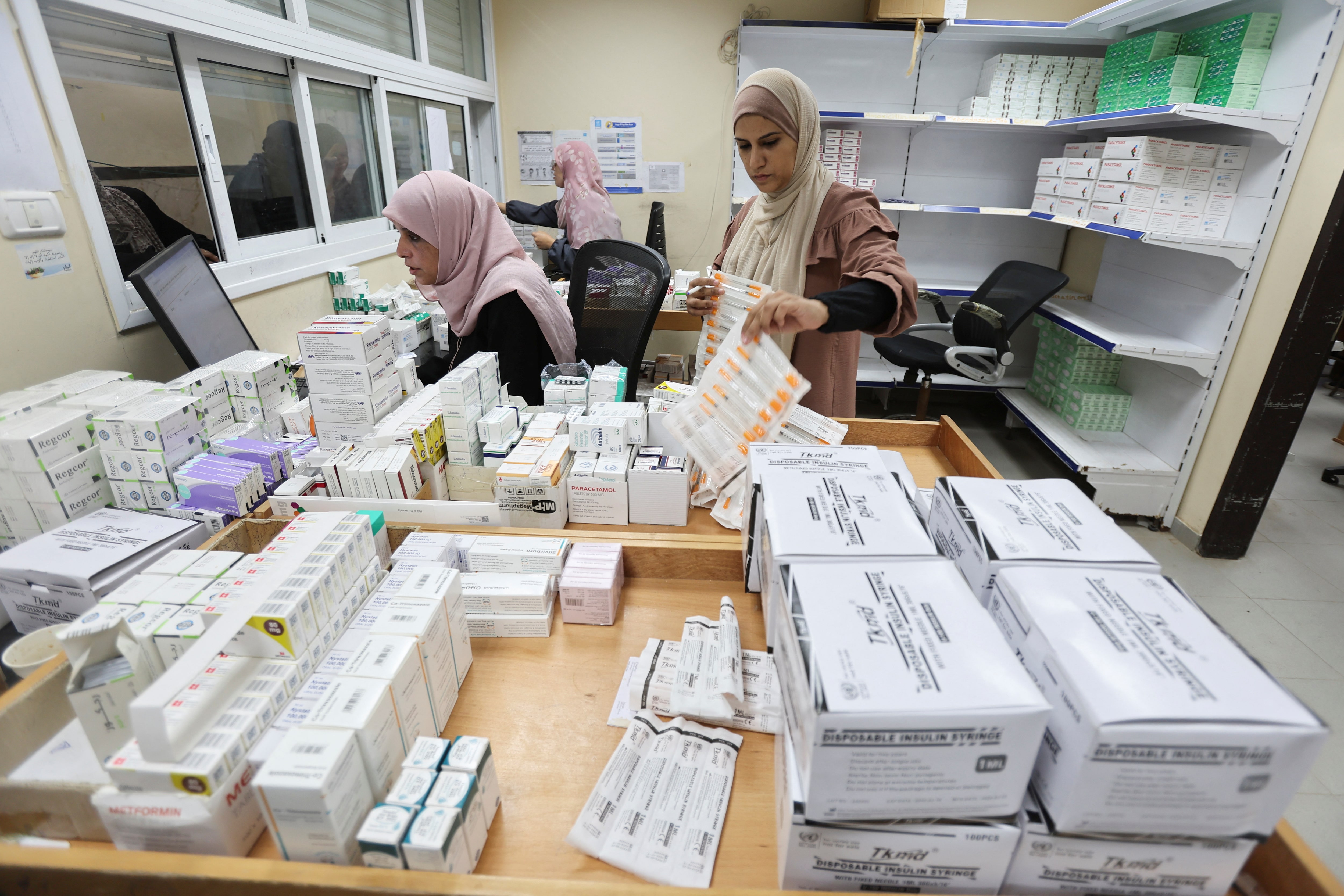 工作人员在联合国近东救济和工程处(UNRWA)运营的健康中心工作,背景是以色列与哈马斯的冲突,地点在加沙地带中部的德尔阿尔巴拉赫,2024年10月29日。路透社/拉马丹·阿贝德联合国,10月30日(路透社)- 联合国安全理事会周三“强烈警告任何试图拆解或削弱”联合国巴勒斯坦难民机构UNRWA的运作和任务,此前以色列通过了一项禁止其运作的法律。