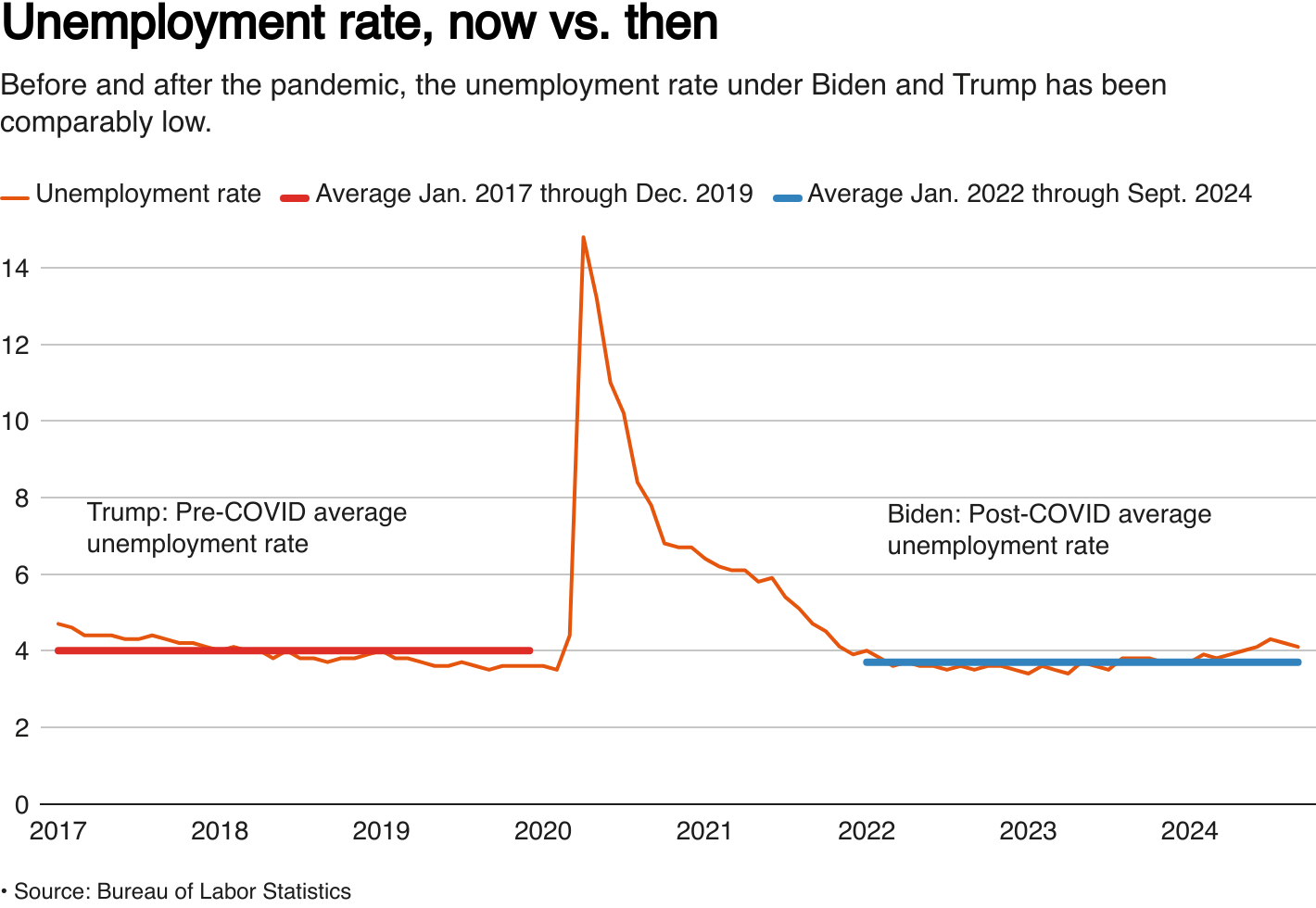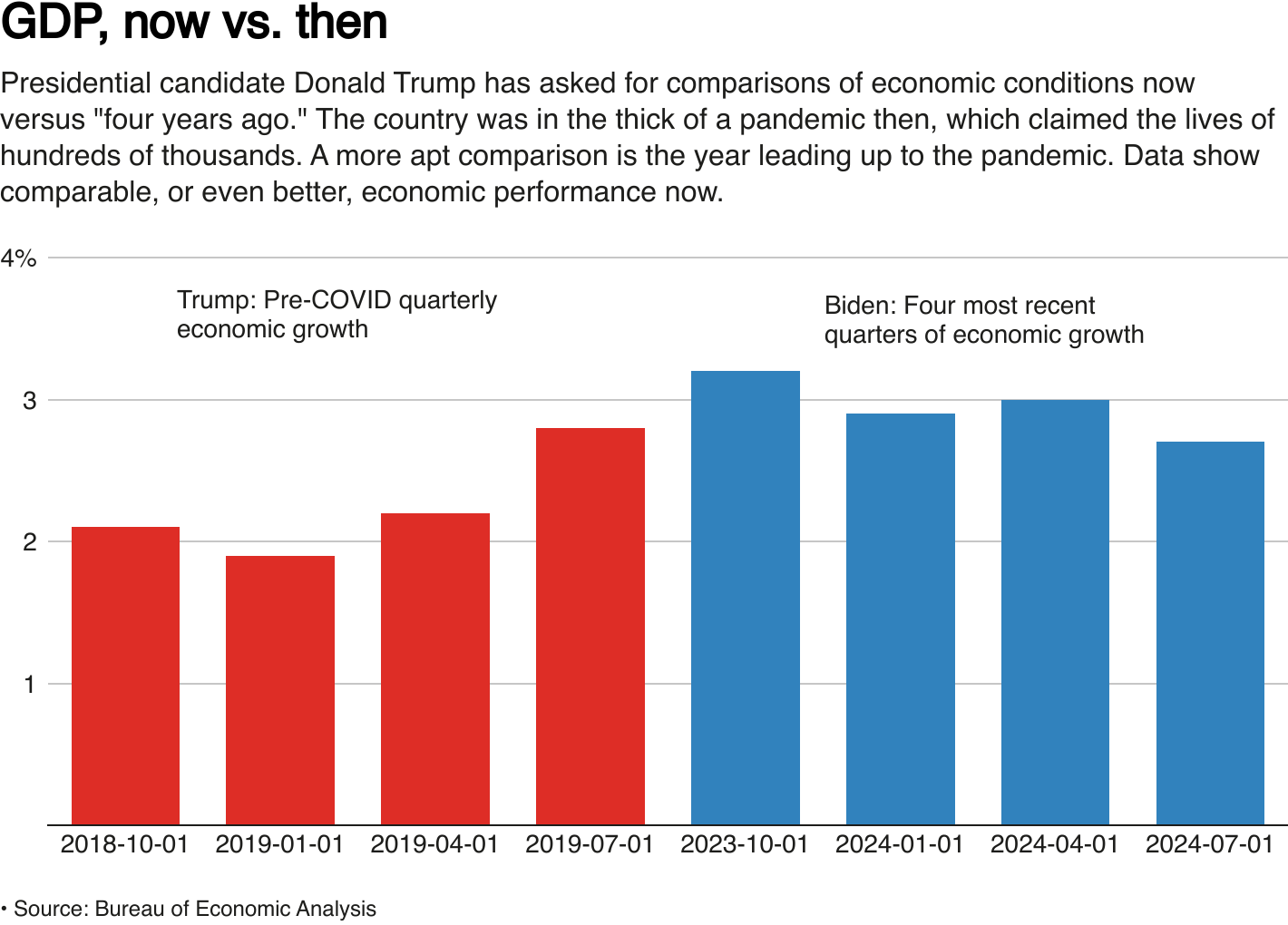 为了对自己更公平,特朗普可能想把日历拨回到2019年,但即便如此,记录也是喜忧参半。如果现在与那时相比,有一件事显而易见,那就是经济的许多方面看起来是多么相似,许多经济学家认为这是两党努力防止健康灾难演变为经济灾难的成功证明。