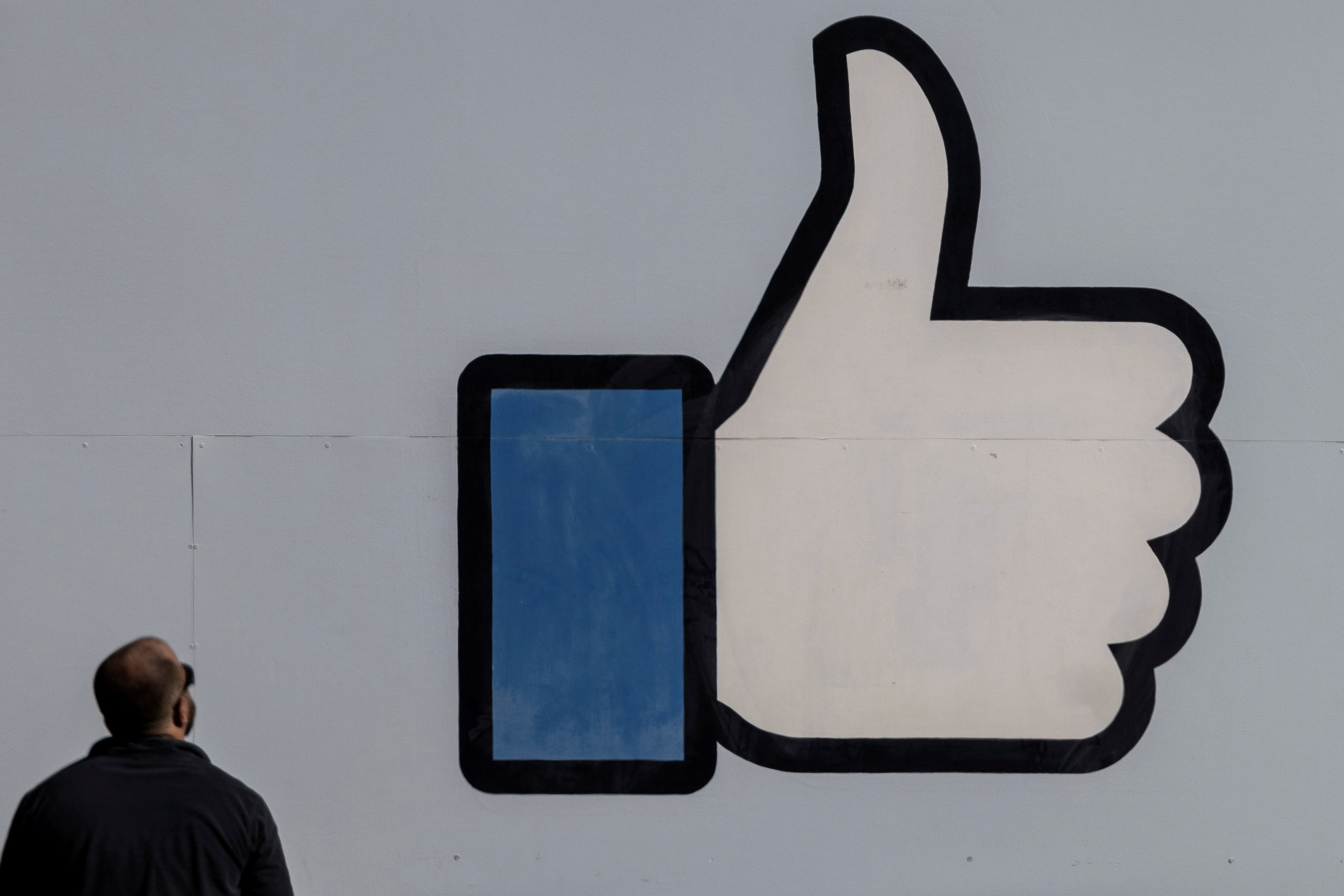 第1项,共2项 一名男子站在美国加利福尼亚州门洛帕克Facebook总部的入口标志前,2021年10月27日。路透社/卡洛斯·巴里亚/档案照片