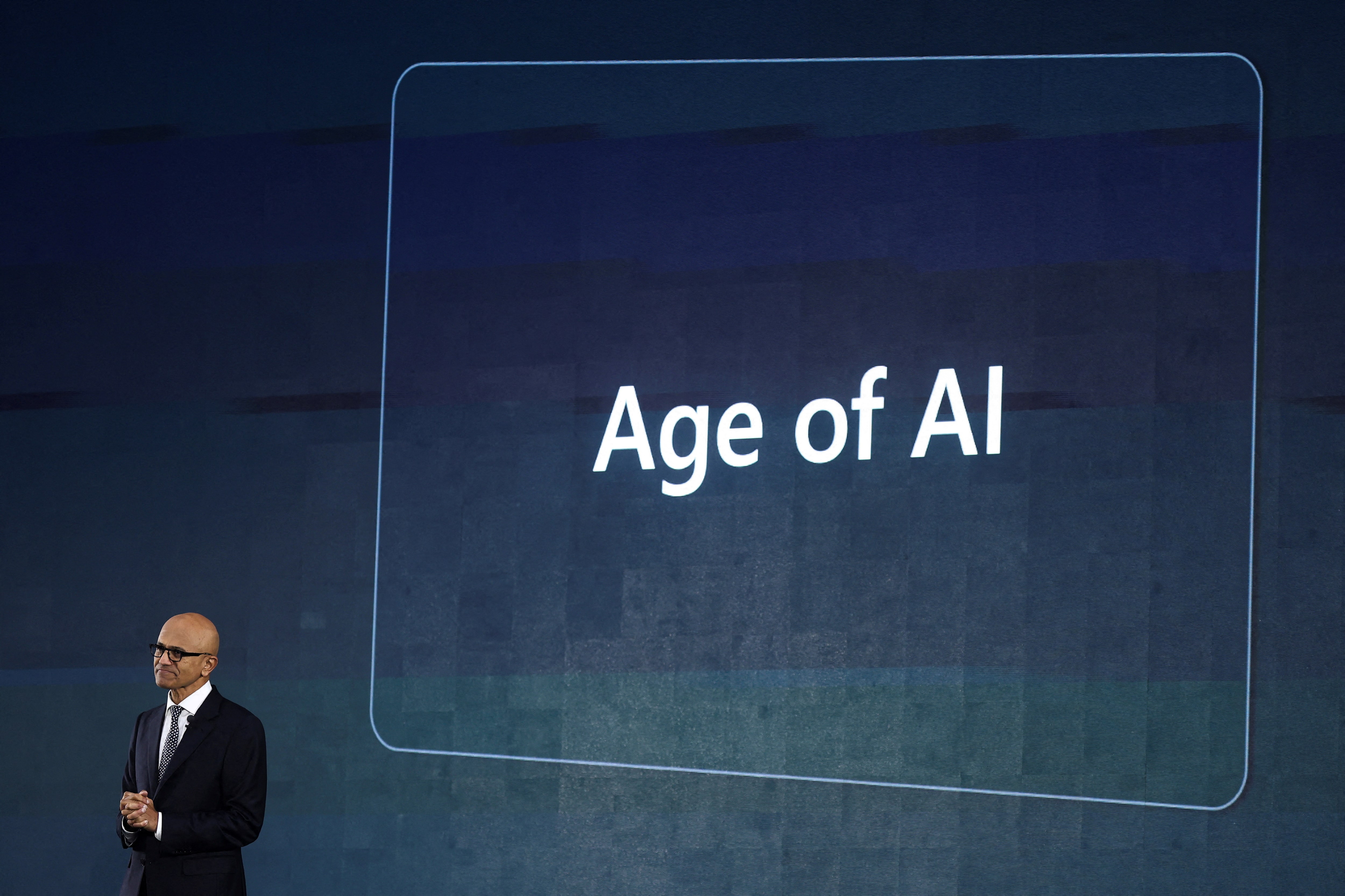 微软公司执行董事长兼首席执行官萨提亚·纳德拉在2024年5月1日于泰国曼谷举行的“微软Build:人工智能日”活动中发言。路透社/查利尼·提拉苏帕/档案照片