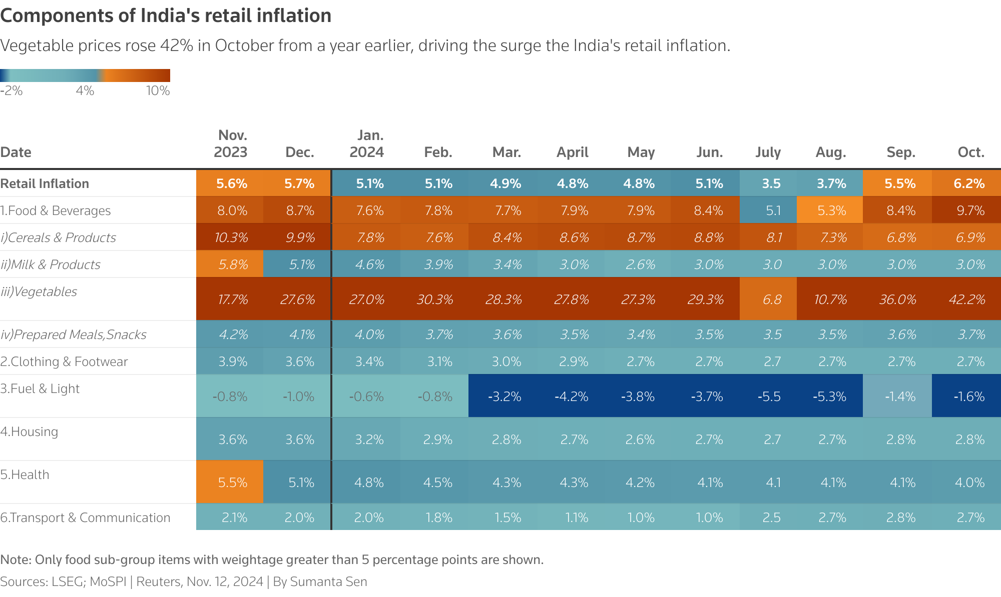 印度10月份零售通胀飙升至14个月高点,蔬菜价格飙升 | 路透社