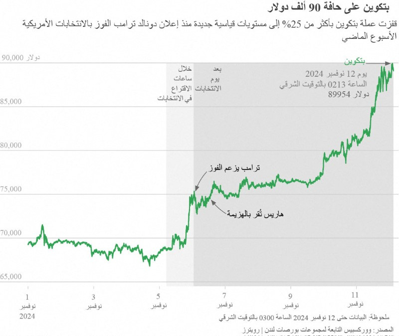 比特币接近9万美元,受到特朗普赢得美国总统的支持 | 路透社