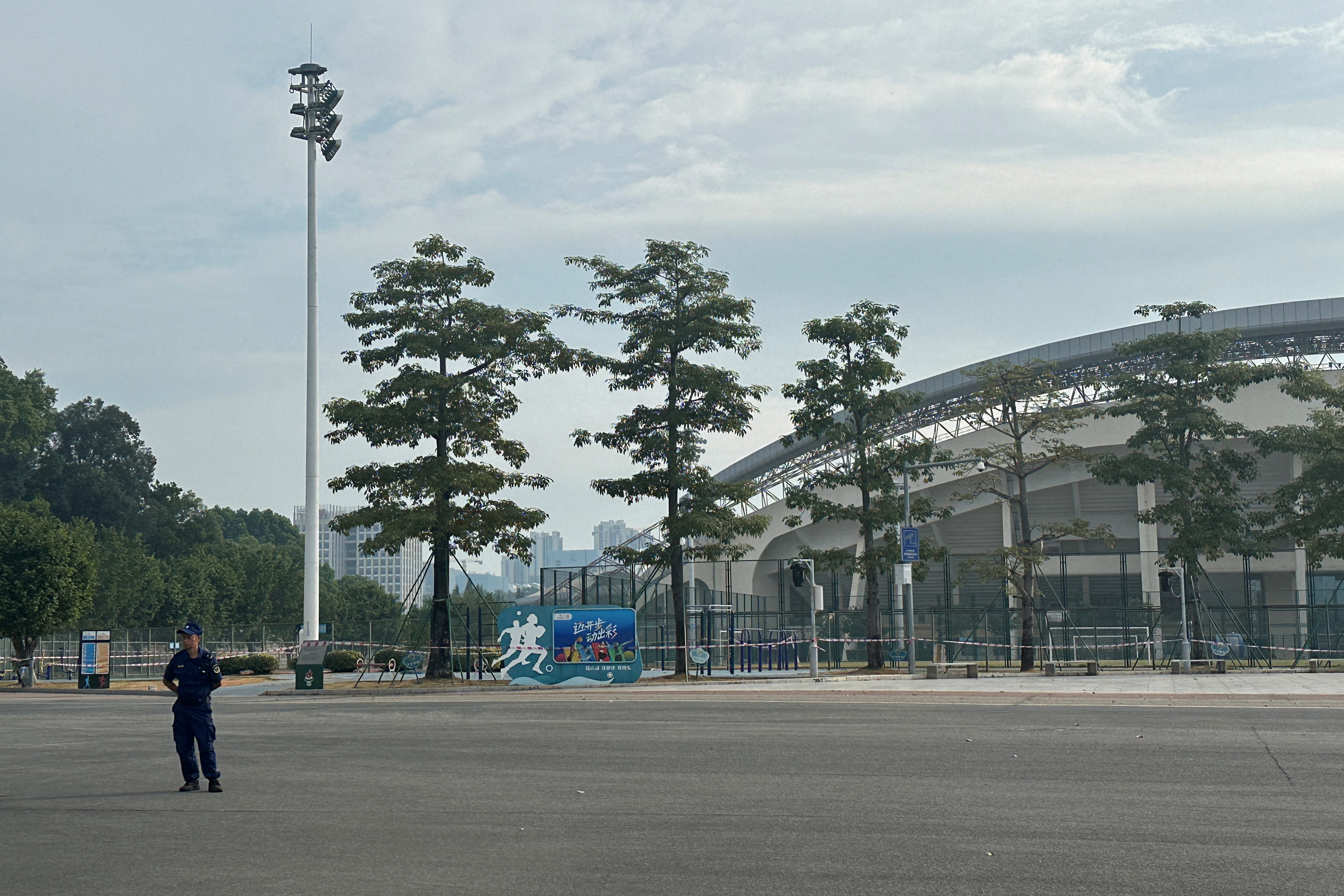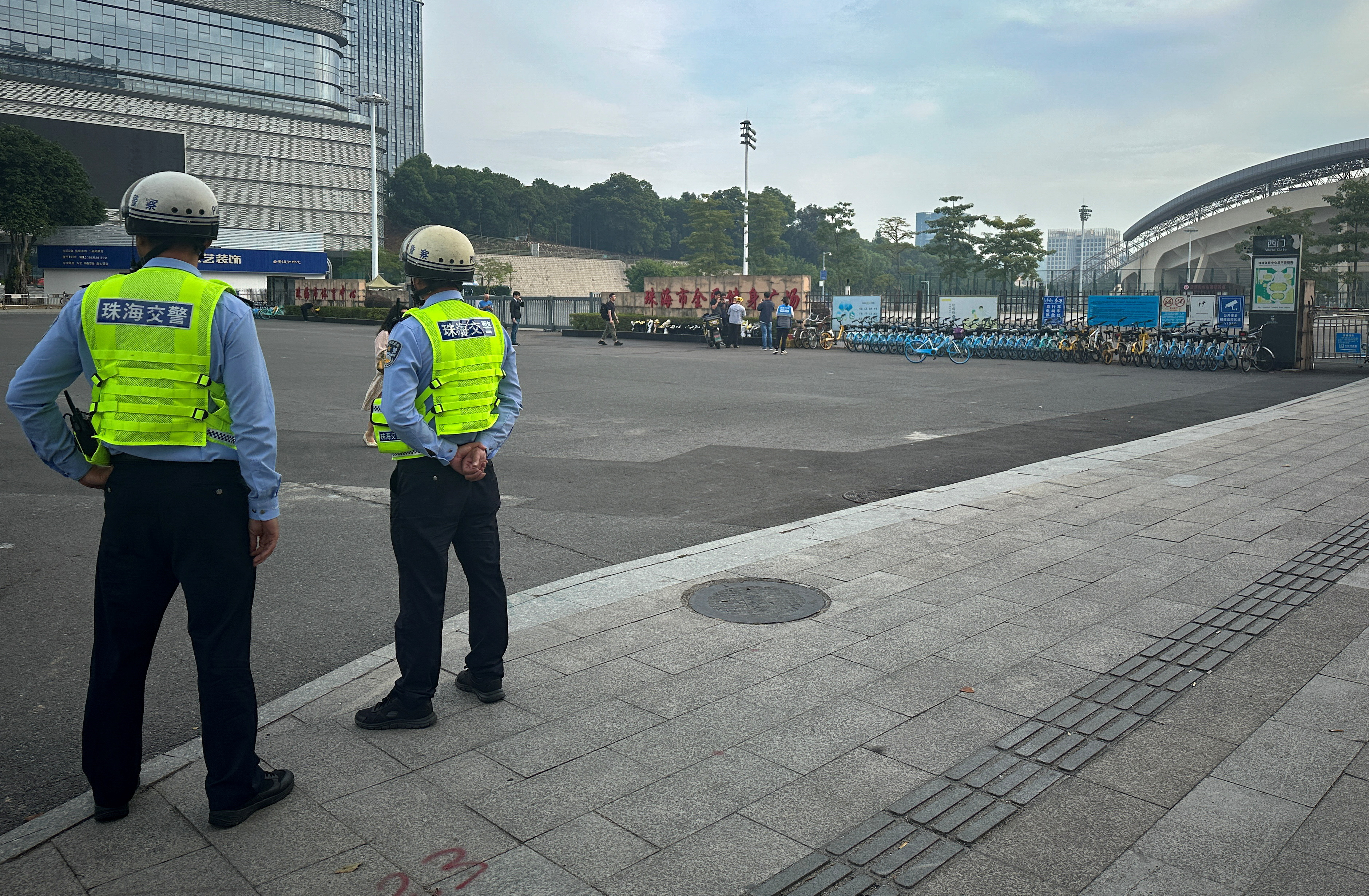 第1项,共4项 警察在中国广东省珠海市一处发生致命汽车袭击的体育中心外站岗,2024年11月13日。路透社/王婷书