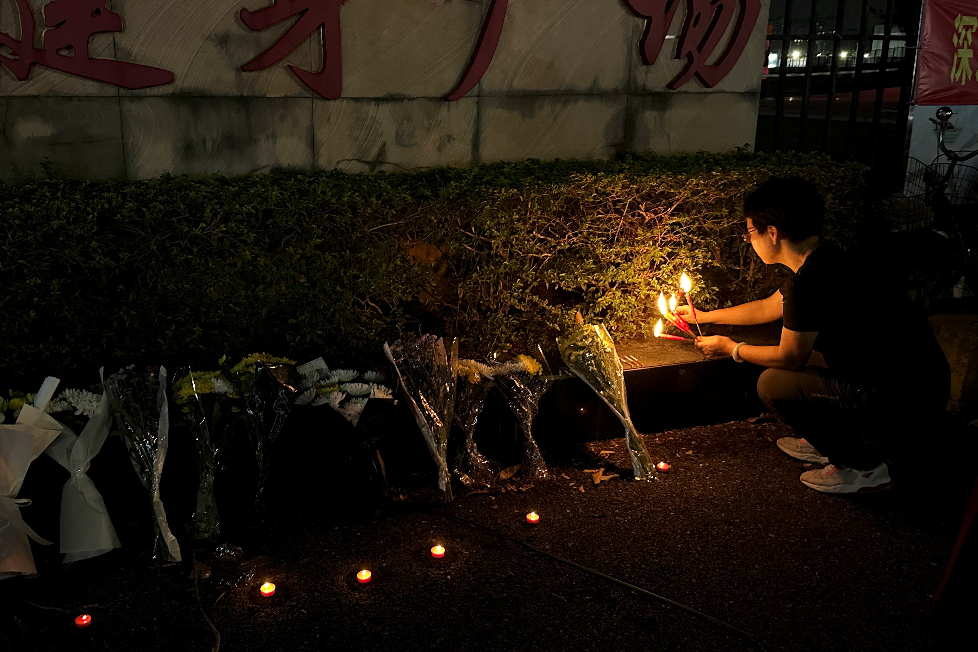 周二晚上在体育中心西门放置的蜡烛和鲜花在一夜之间全部被移除,现场的一名路透社记者表示。