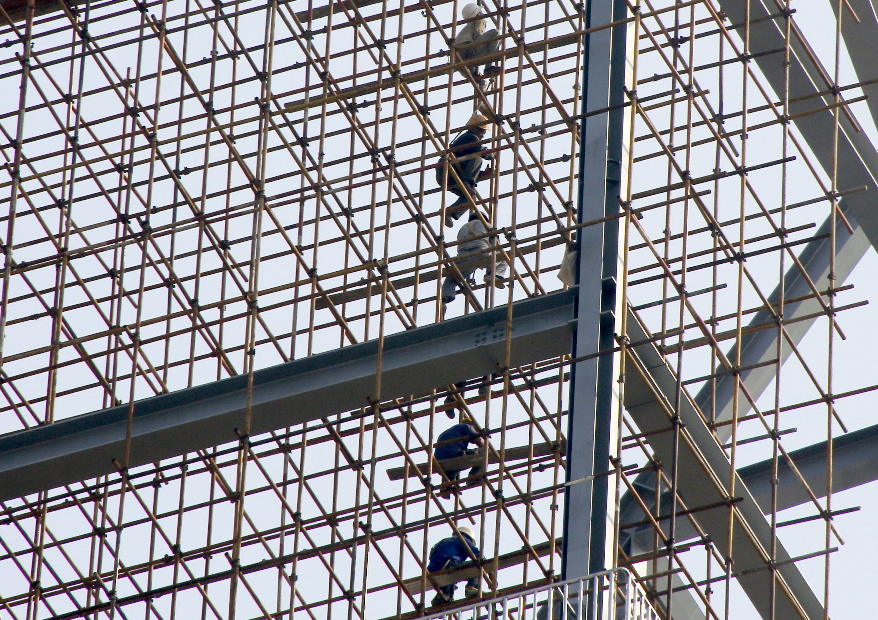 工人在中国北京一个住宅和商业综合体的施工现场的脚手架上工作,2015年9月18日。路透社/金京勋/档案照片北京,11月13日(路透社)- 中国周三公布了住房和土地交易的税收优惠,旨在通过增加需求和缓解开发商的财务困难来支持受到危机影响的房地产市场。