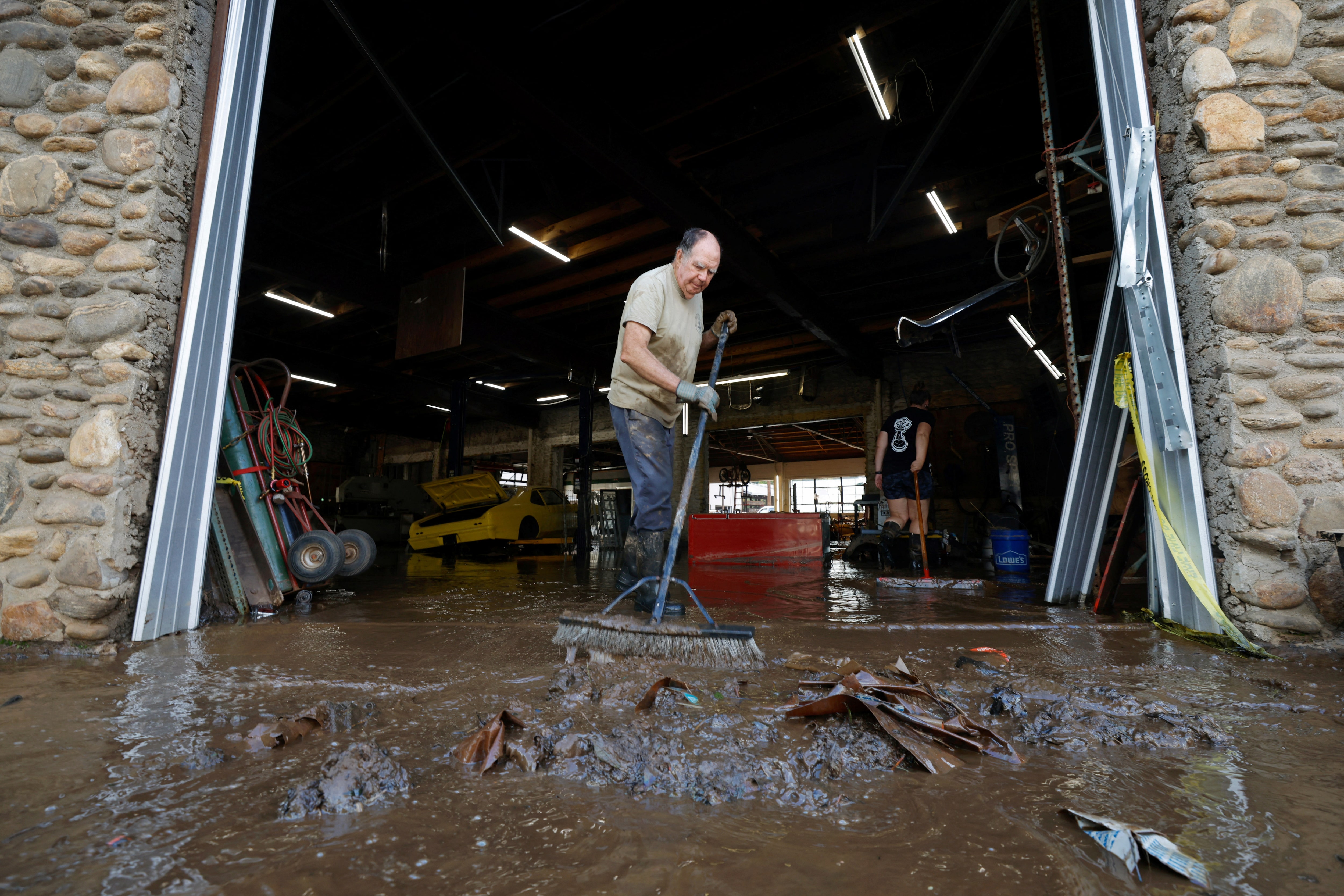 一名工人在美国北卡罗来纳州坎顿的一家汽车修理店清理因海伦飓风而被淹的泥土,2024年10月3日。路透社/乔纳森·德雷克就在当选总统特朗普赢得新任期的几天后,全球超过650名投资者,管理着33万亿美元的资产,宣布了2024全球投资者声明。该声明致函全球政策制定者,呼吁采取全政府的方法实施与《巴黎协定》一致的政策,以限制气温上升不至于达到灾难性水平。经济范围内的公共政策包括实施减少高污染行业碳排放的策略,并增加对新兴市场和发展中经济体气候缓解、韧性和适应的私人投资。