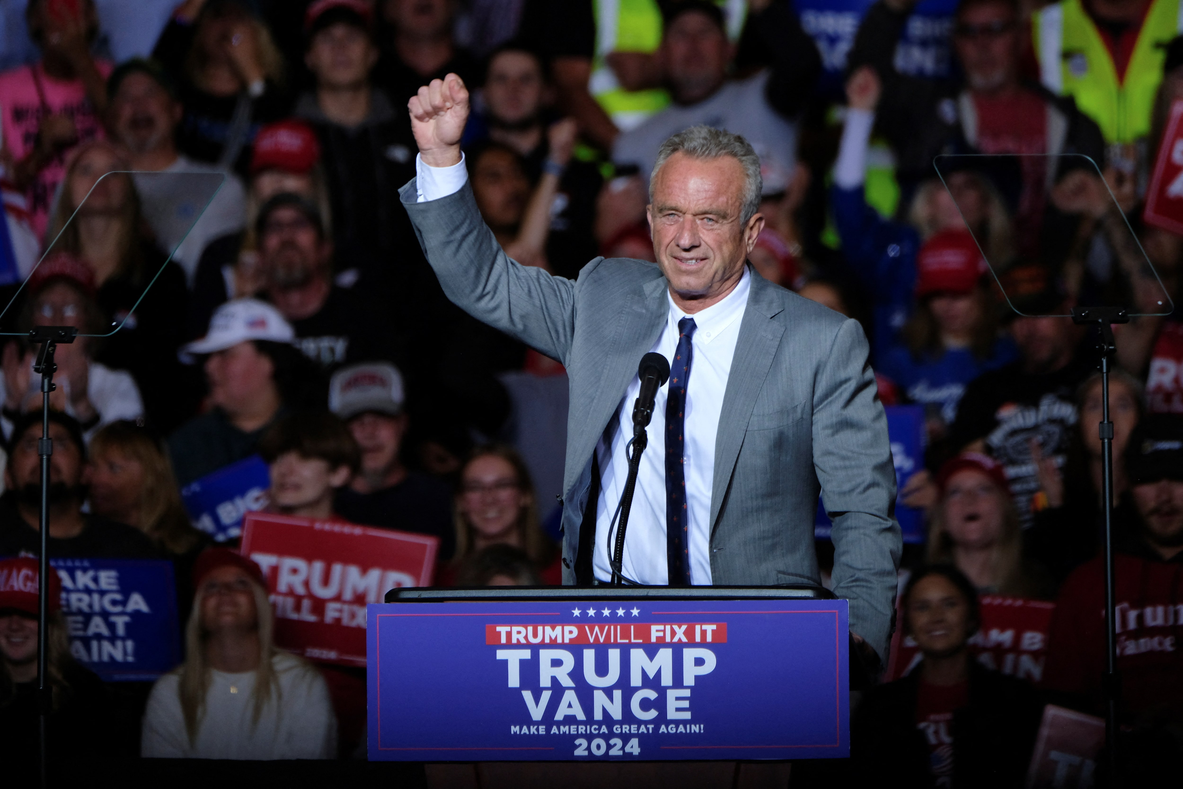 罗伯特·F·肯尼迪 Jr. 参加了威斯康星州密尔沃基的共和党总统候选人、前美国总统唐纳德·特朗普的竞选活动,时间是2024年11月1日。路透社/乔尔·安赫尔·华雷斯/档案照片11月14日(路透社) - 环保和反疫苗活动家罗伯特·F·肯尼迪 Jr. 被当选总统唐纳德·特朗普选中担任美国卫生与公共服务部的领导,该部门是美国的顶级卫生机构。