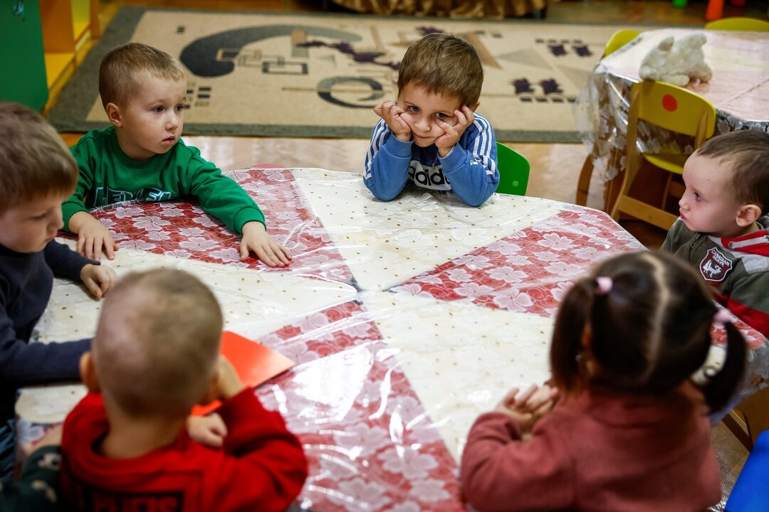 照顾布查幼儿园的珍妮亚和其他孩子的纳塔莉亚·塔图申科说,这个两岁的孩子和他的同龄人比战争前的孩子更敏感。