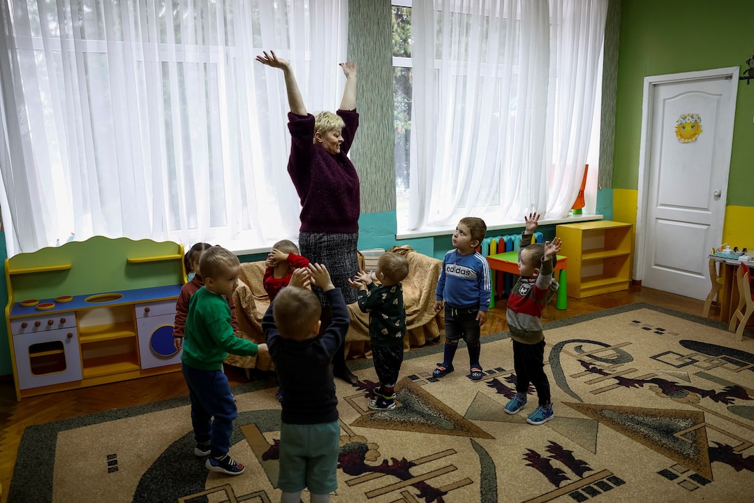 照顾布查幼儿园的珍妮亚和其他孩子的纳塔莉亚·塔图申科说,这个两岁的孩子和他的同龄人比战争前的孩子更敏感。