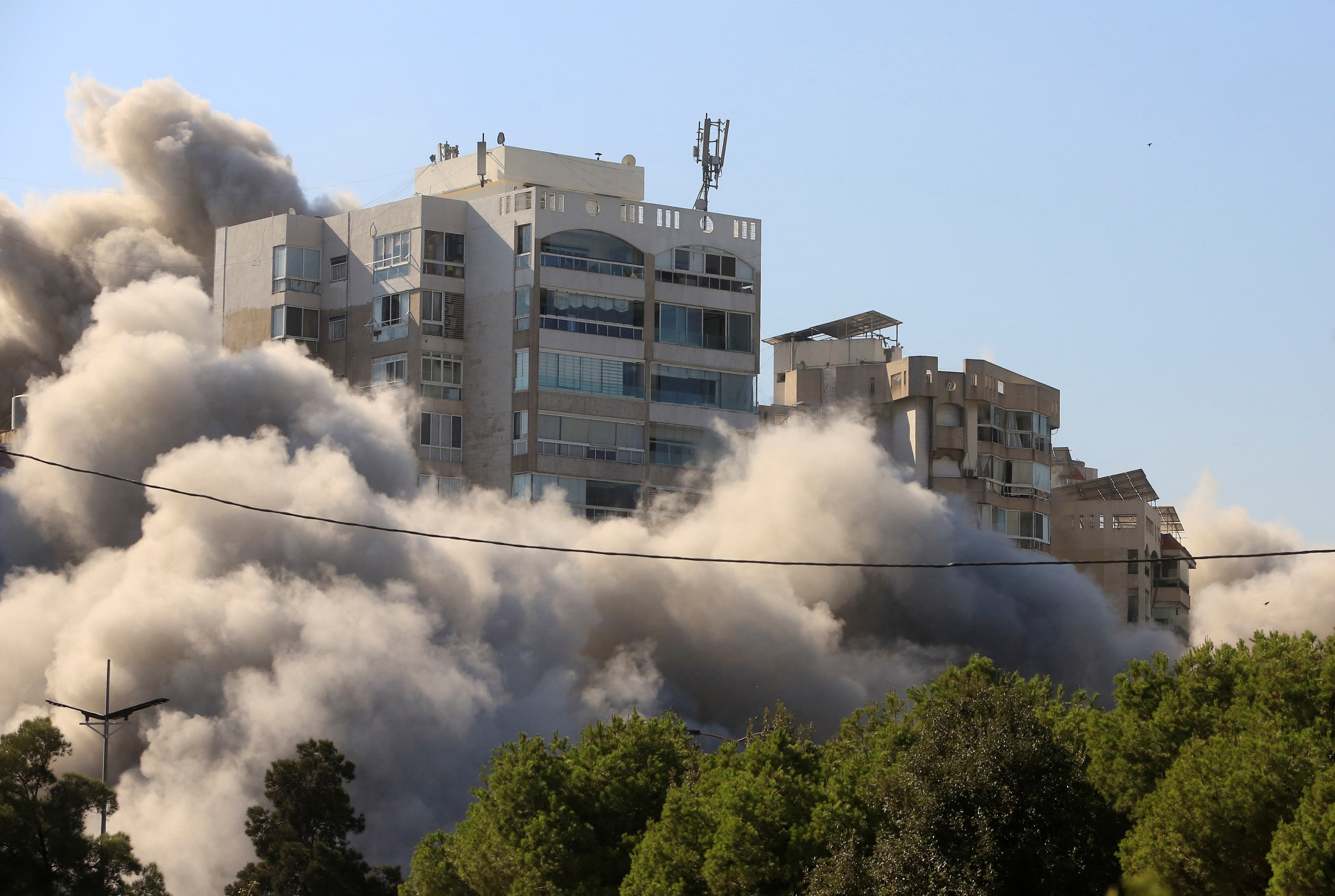 项目1中的2 烟雾在贝鲁特黎巴嫩的Tayouneh社区一栋建筑物上升起,附近是一个中央公园,正值真主党与以色列军队之间的持续敌对行动,2024年11月15日。路透社/穆罕默德·亚辛