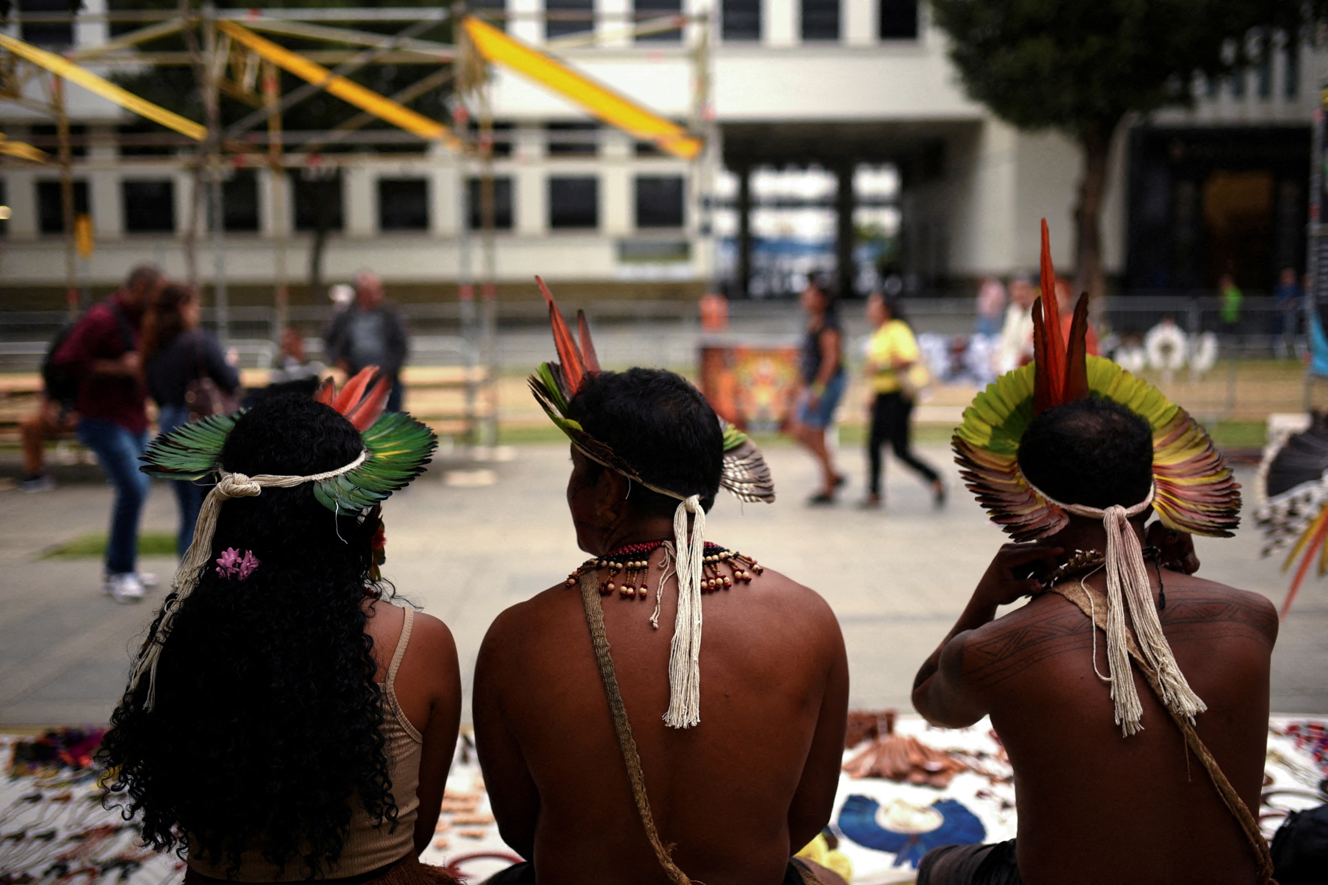 巴西帕塔霍土著人民在2024年11月14日于巴西里约热内卢举行的G20峰会期间,参加全球反饥饿和贫困联盟节日的第1项,共5项。路透社/Tita Barros