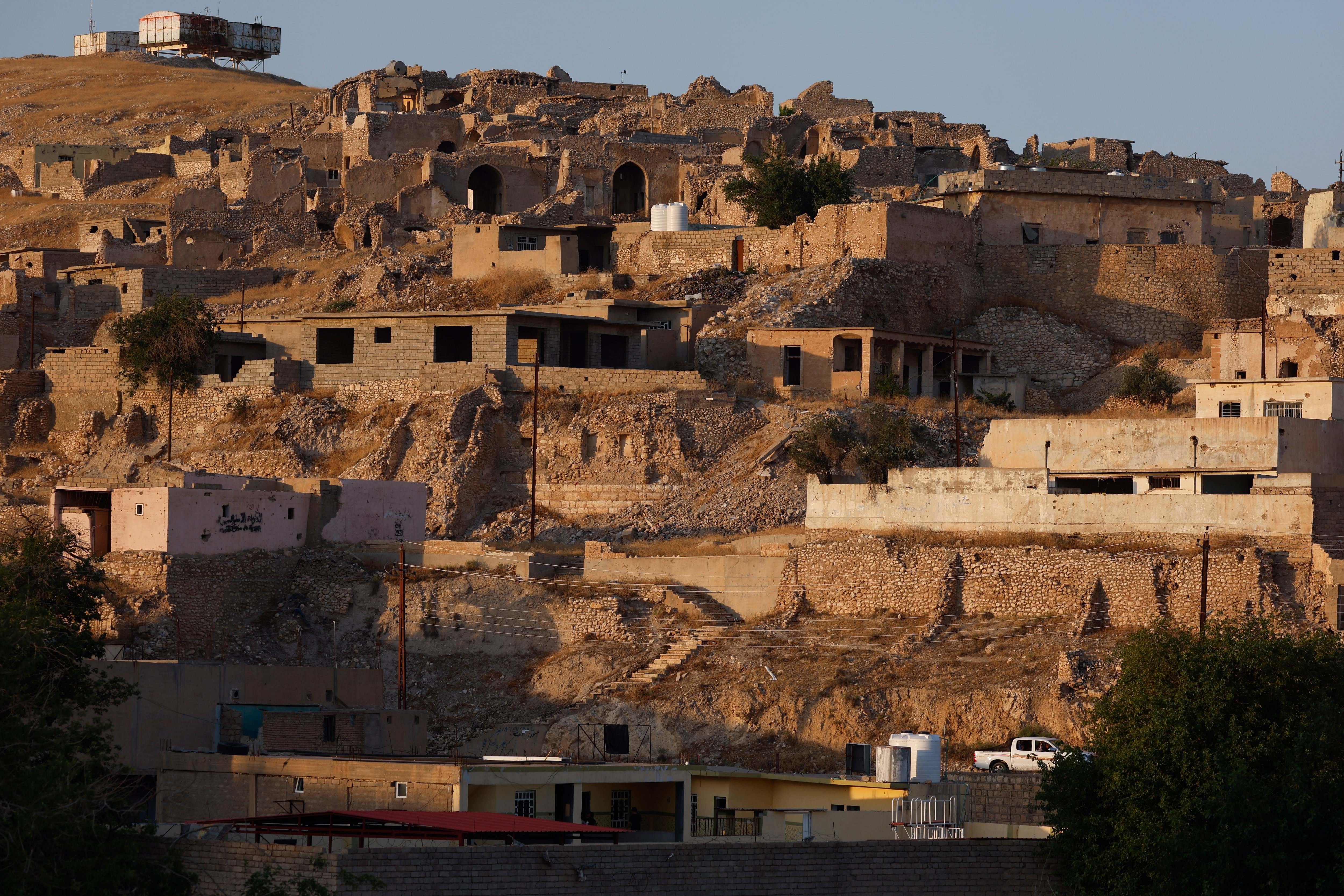该地区的大部分仍然 在很大程度上被毁坏。安全问题也是一个难题:帮助驱逐IS出辛贾尔的民族和宗教民兵拒绝解散,而土耳其对其中一些人进行 无人机袭击。就业机会很少,尤其是对于那些因战争而中断教育的人。