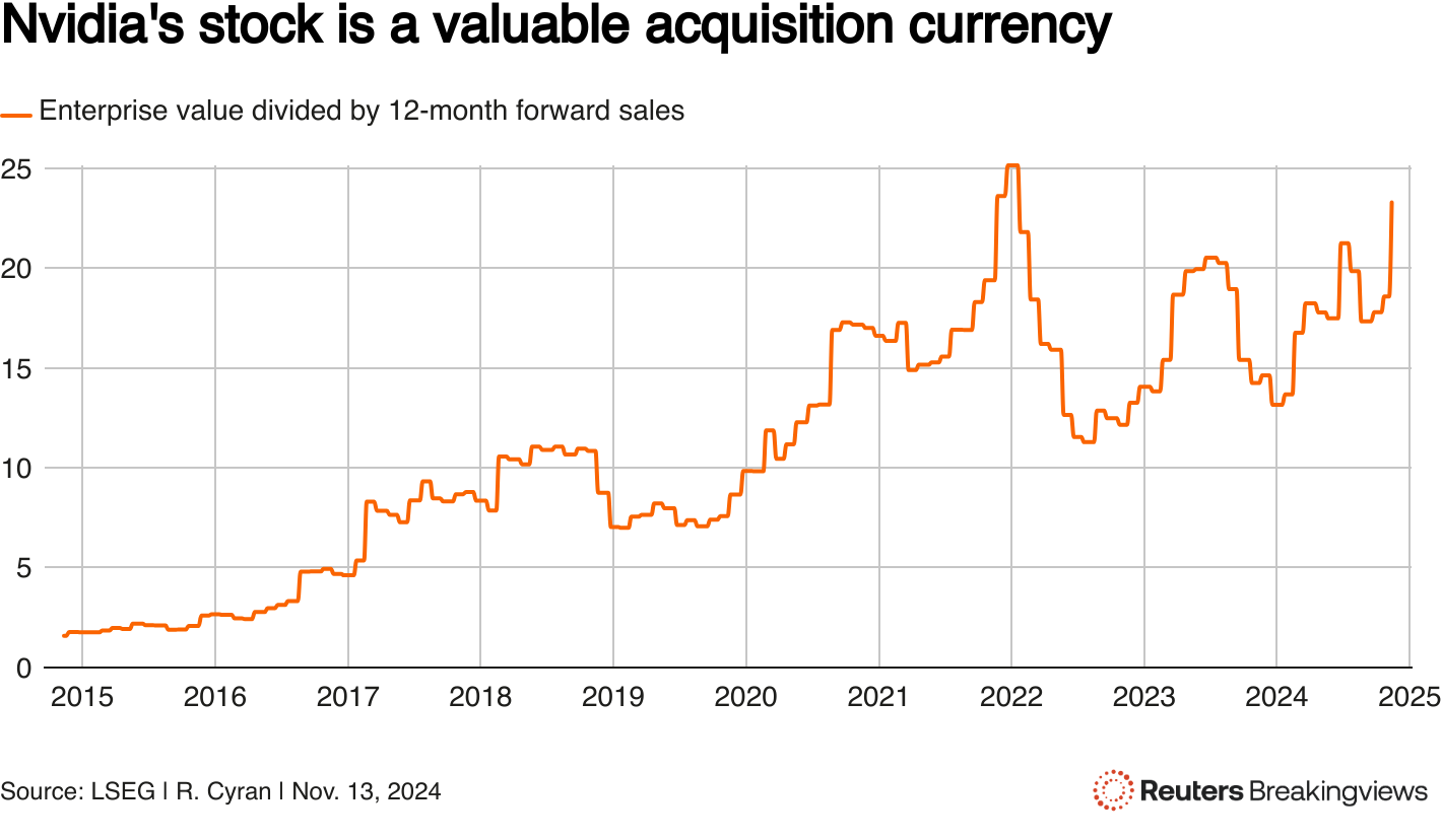 英伟达日益增长的现金储备暗示并购活动 | 路透社