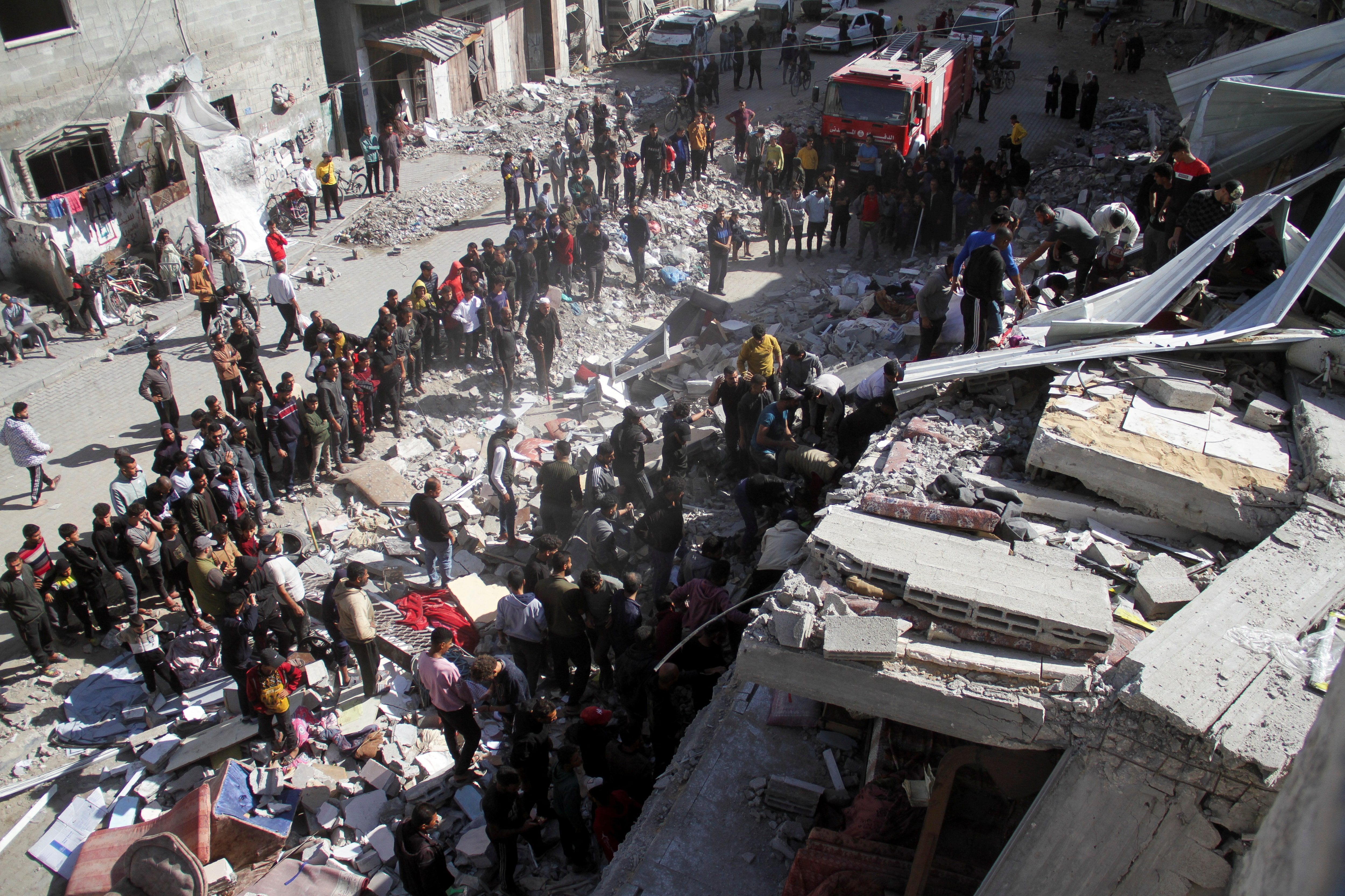 三名巴勒斯坦人中的第一项,包括救援人员,在加沙市11月18日以色列对一所房屋的袭击现场搜寻伤亡者。路透社/马哈茂德·伊萨