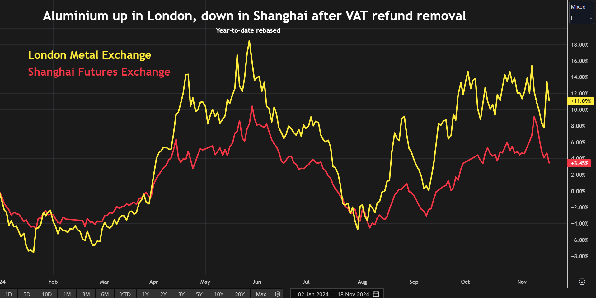 财政部自12月1日起取消13%的增值税退税,这也适用于铜产品的出口。