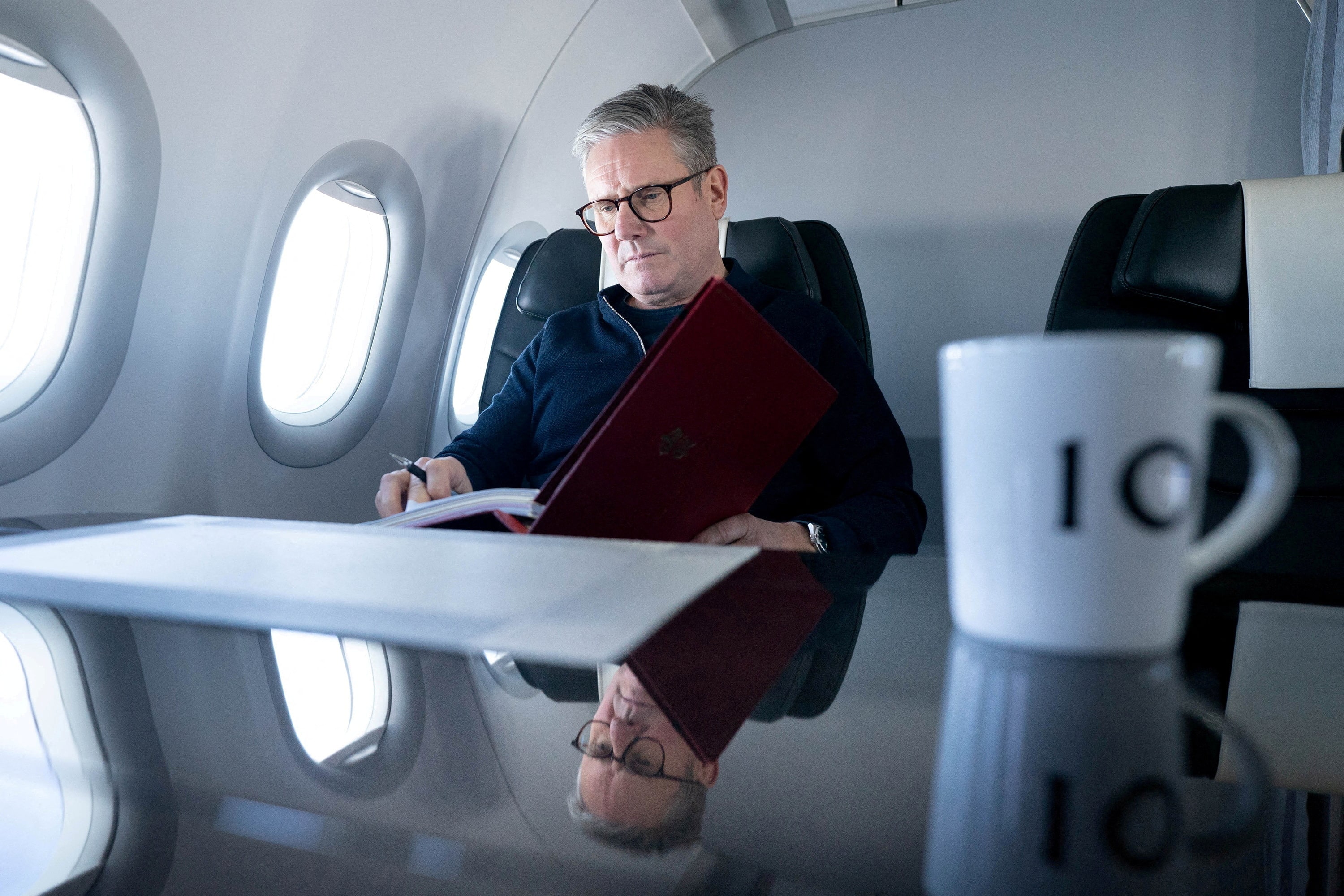 英国首相基尔·斯塔默在政府飞机上工作,前往巴西里约热内卢参加G20峰会。图片日期:2024年11月17日,斯特凡·鲁索/池 via 路透社/档案照片伦敦,11月18日(路透社)- 英国首相基尔·斯塔默周一表示,他将在与印度总理纳伦德拉·莫迪在巴西G20峰会举行的双边会议后,重新启动与印度的自由贸易协议谈判。
