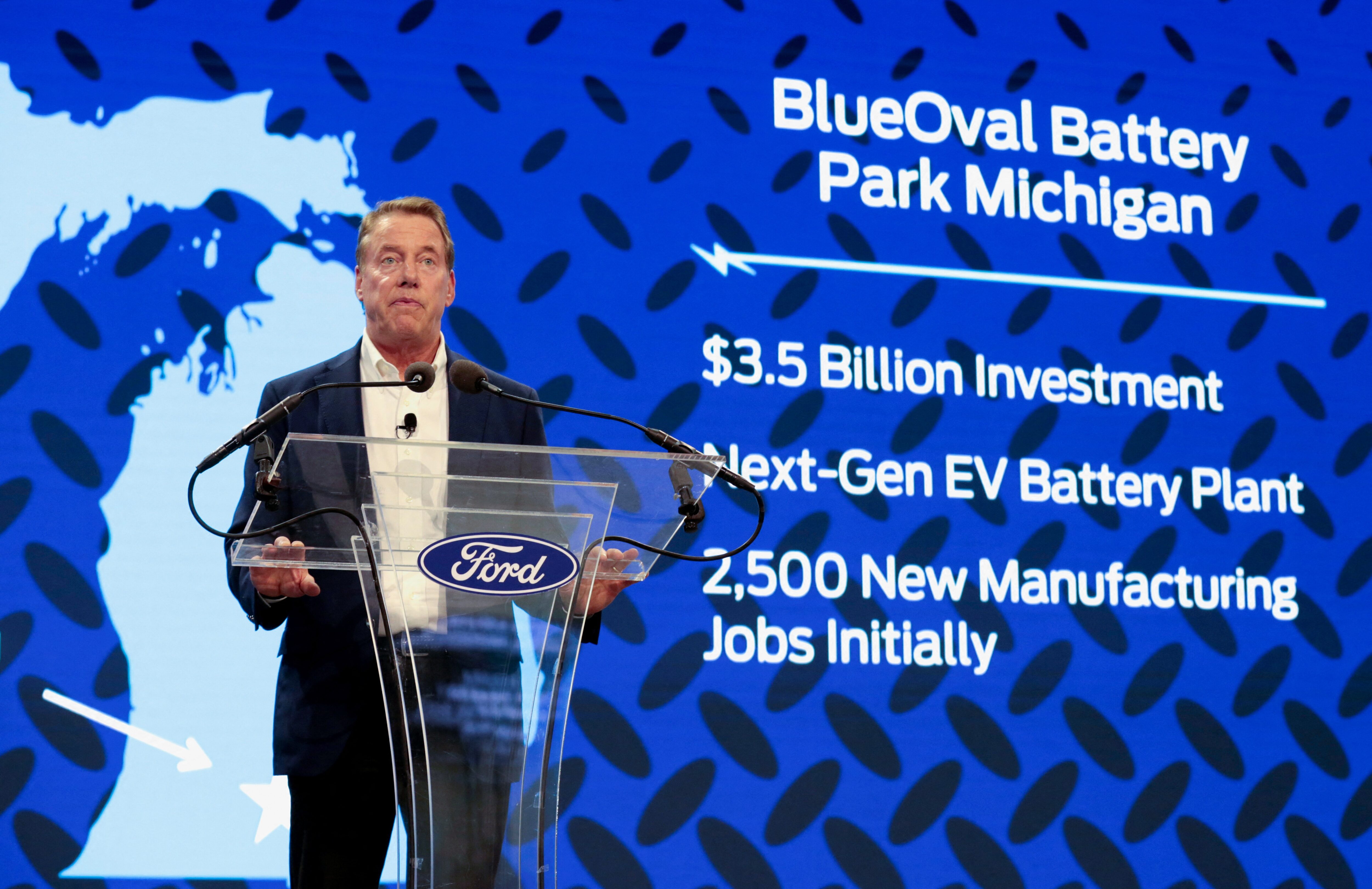 福特汽车公司首席执行官比尔·福特宣布,福特将与中国的安培科技合作,在密歇根州马歇尔建设一座全电动汽车电池工厂,新闻发布会于2023年2月13日在美国密歇根州罗穆卢斯举行。 REUTERS/Rebecca Cook 制造商正在根据技能建立技术中心。JLR在美国、印度和中国等地设有九个技术中心。回到2022年,当科技巨头Meta和Twitter宣布裁员时,它试图吸引一些冗余员工,宣布从数据科学和机器学习到自动驾驶的职位。