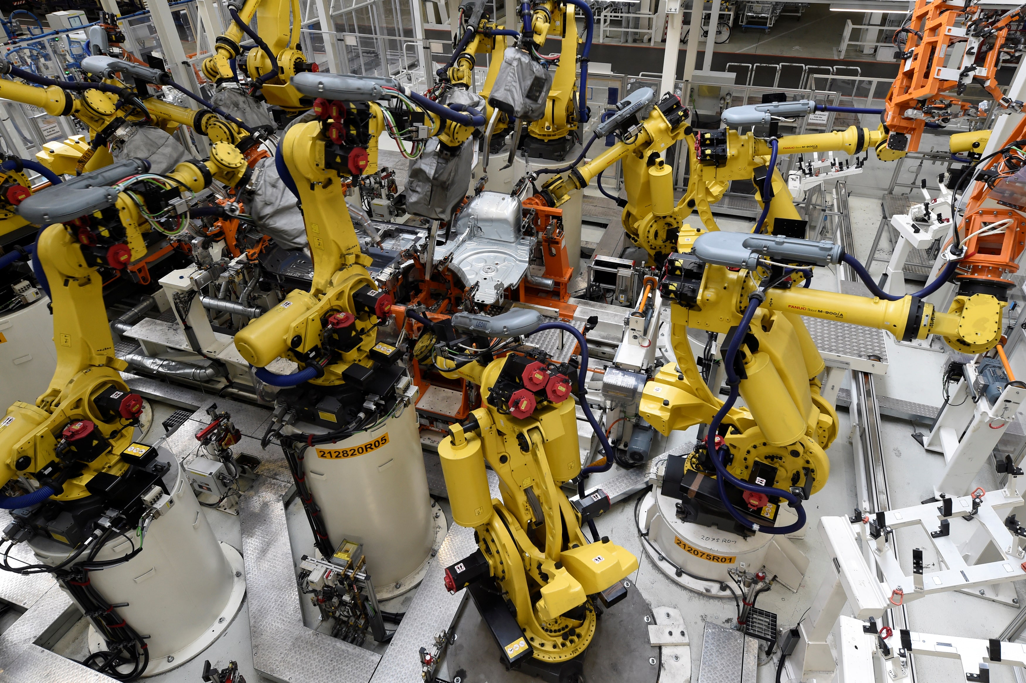 一辆汽车的车身被焊接机器人包围,在德国汽车制造商大众的生产线上。工人需要接受培训,以维护汽车制造商使用的机器人。路透社/法比安·比默宝马每年在其培训项目中投资4亿欧元。人力资源服务、招聘和资格副总裁莫里茨·基彭贝格估计,汽车制造商所需的90%以上的技能可以通过对员工现有技能的附加培训来实现。公司强调终身学习的重要性。