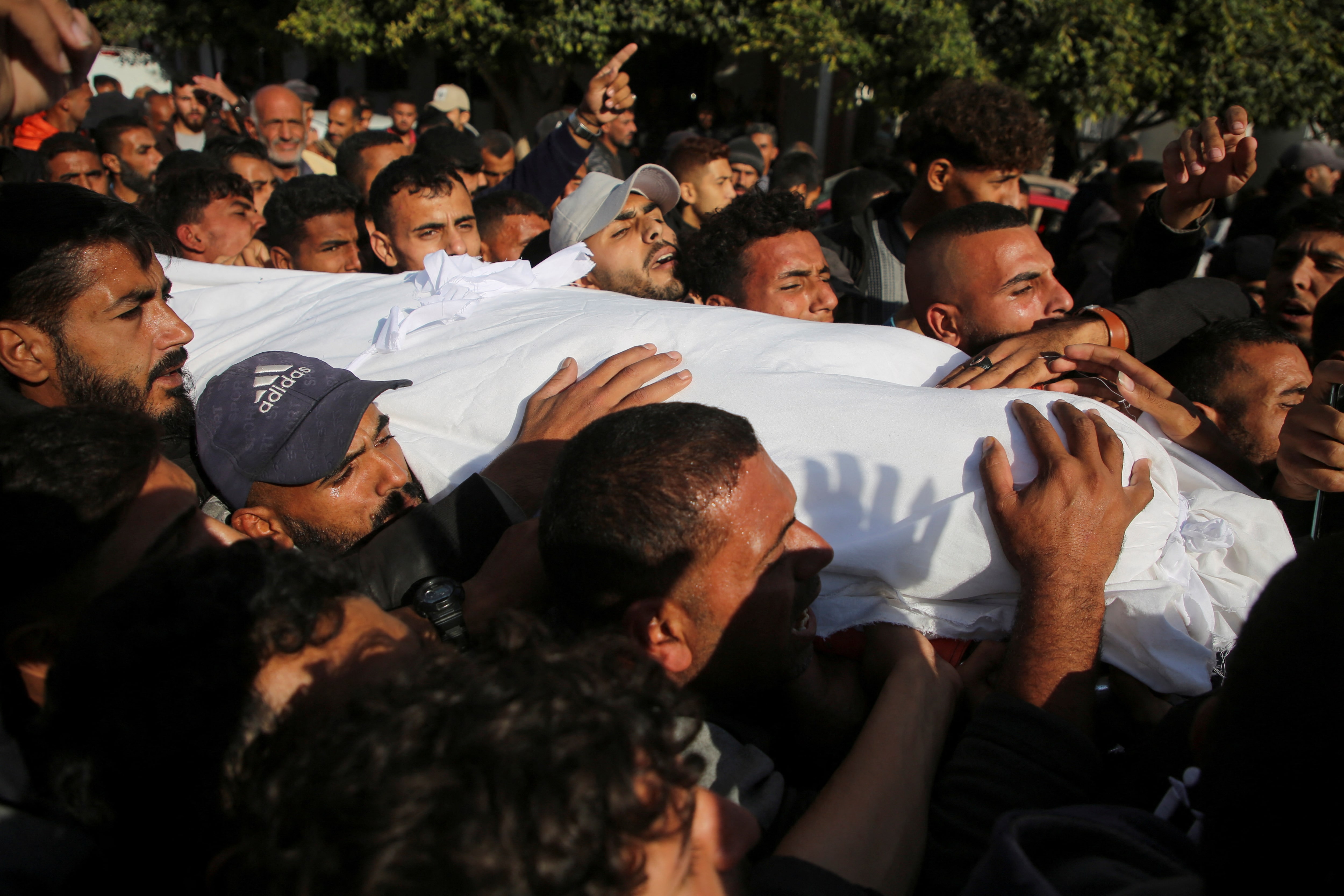送葬者抬着一具在以色列空袭中遇难的巴勒斯坦人的尸体,地点在2024年11月19日的哈尼尤斯。摄影:哈特姆·哈立德 - 路透社迪拜 2024年11月19日(路透社) - 加沙卫生部今天星期二表示,自2023年10月7日以来,至少有43972名巴勒斯坦人在以色列对该地区的攻击中遇难,104008人受伤。