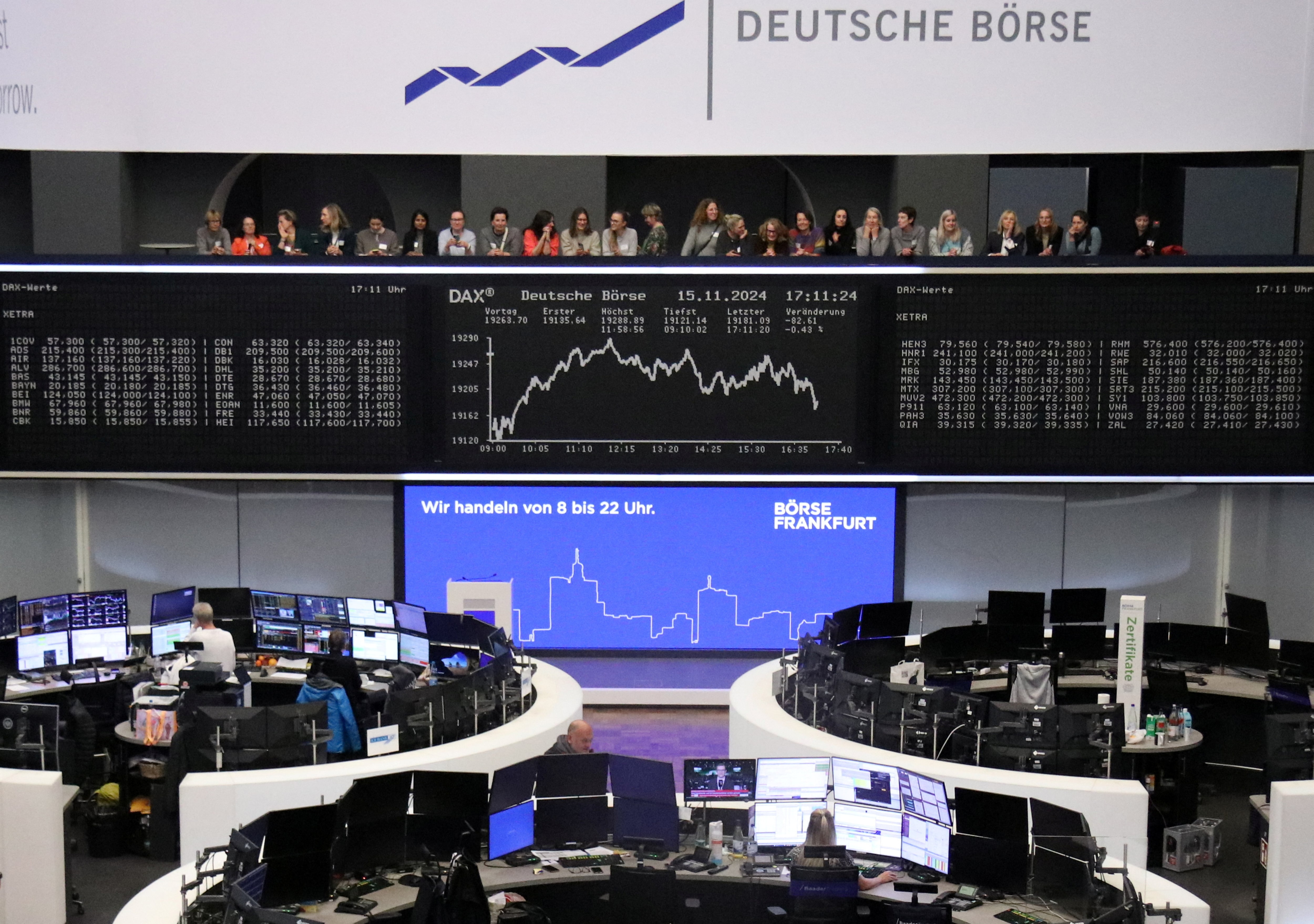 DAX指数,即德国股票价格指数,显示在德国法兰克福证券交易所,2024年11月15日。路透社/工作人员11月19日(路透社)- 由于地缘政治紧张局势加剧,俄罗斯更新了其核战略,欧洲股市跌至三个月来的最低点,投资者纷纷远离风险资产,转向避险资产。