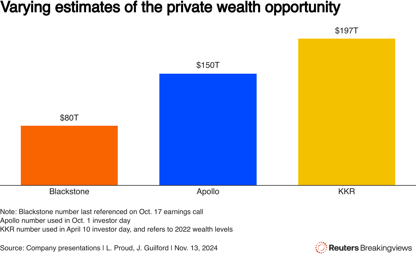 黑石的数字是80万亿美元,阿波罗的是150万亿美元,KKR的是197万亿美元。