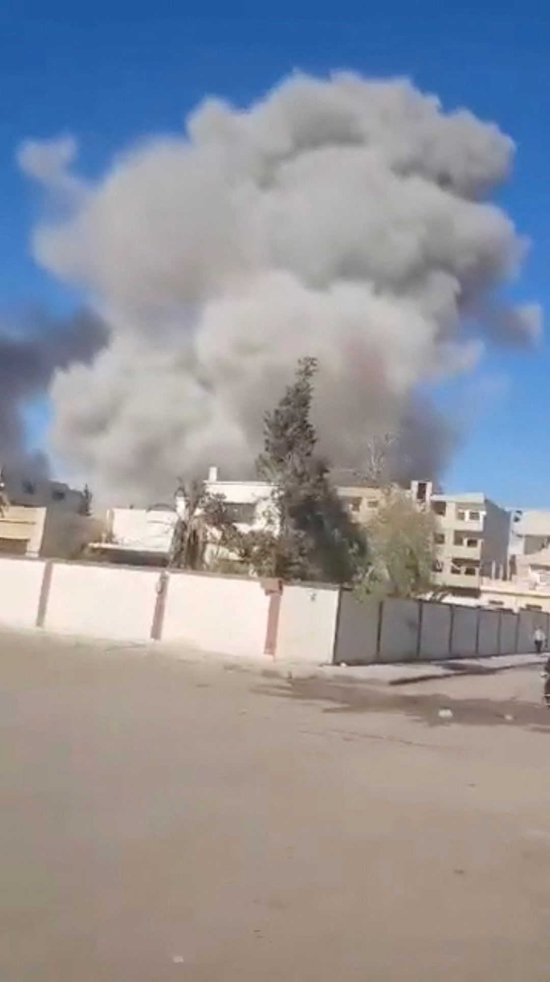 项目1中的2 烟雾在叙利亚历史名城帕尔米拉遭袭后弥漫,2024年11月20日,这段视频截图来自社交媒体。通过路透社