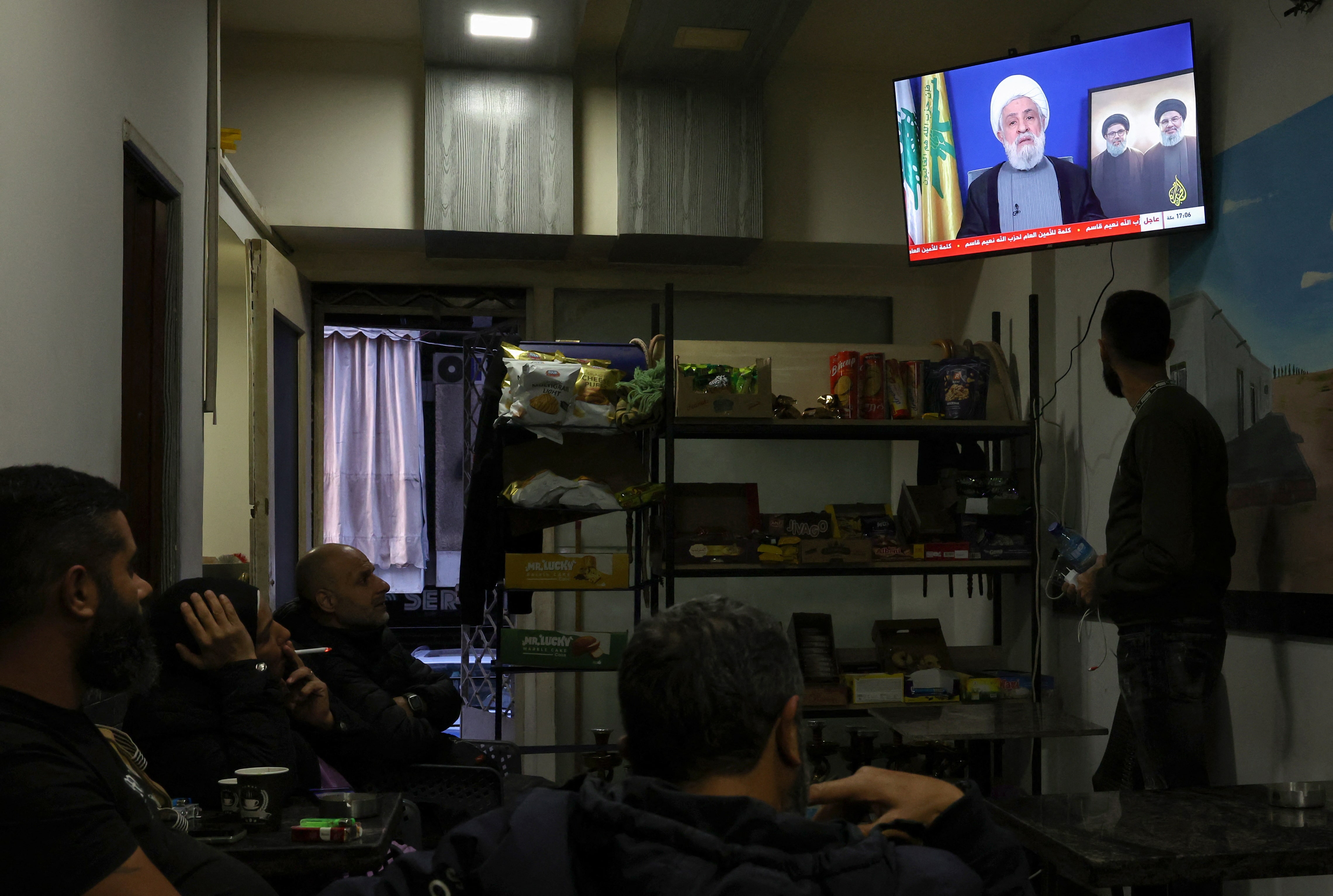 黎巴嫩真主党领导人奈姆·卡西姆在一个未知地点发表讲话,2024年11月20日,这是一段视频中的静态图像。路透社电视/阿尔曼尔电视通过路透社