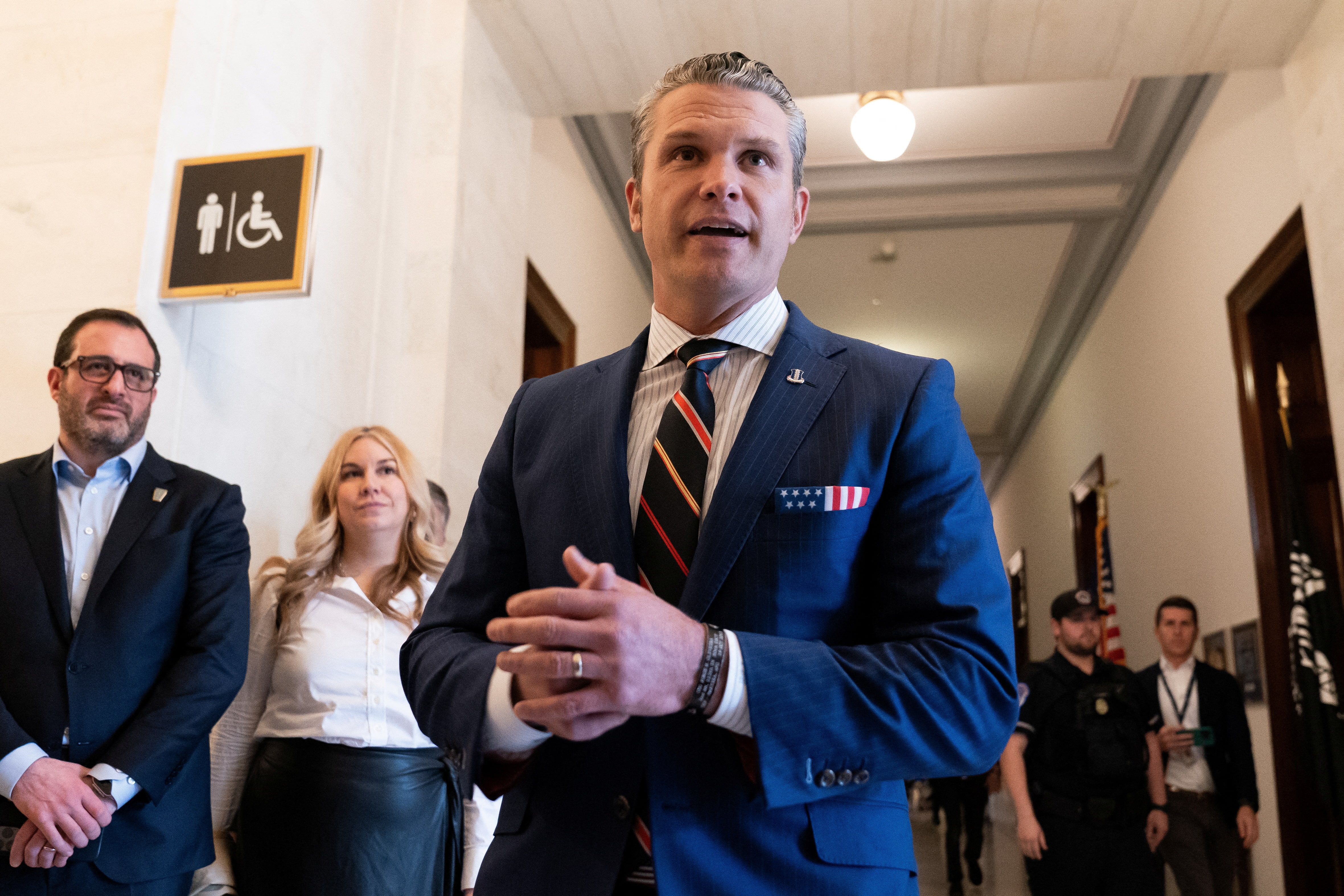 赫格塞斯在国会山对记者表示:“就媒体而言,这非常简单:此事已被全面调查,我已完全被清白,这就是我将要停留的地方。”他与共和党参议员会面以争取对其提名的支持。