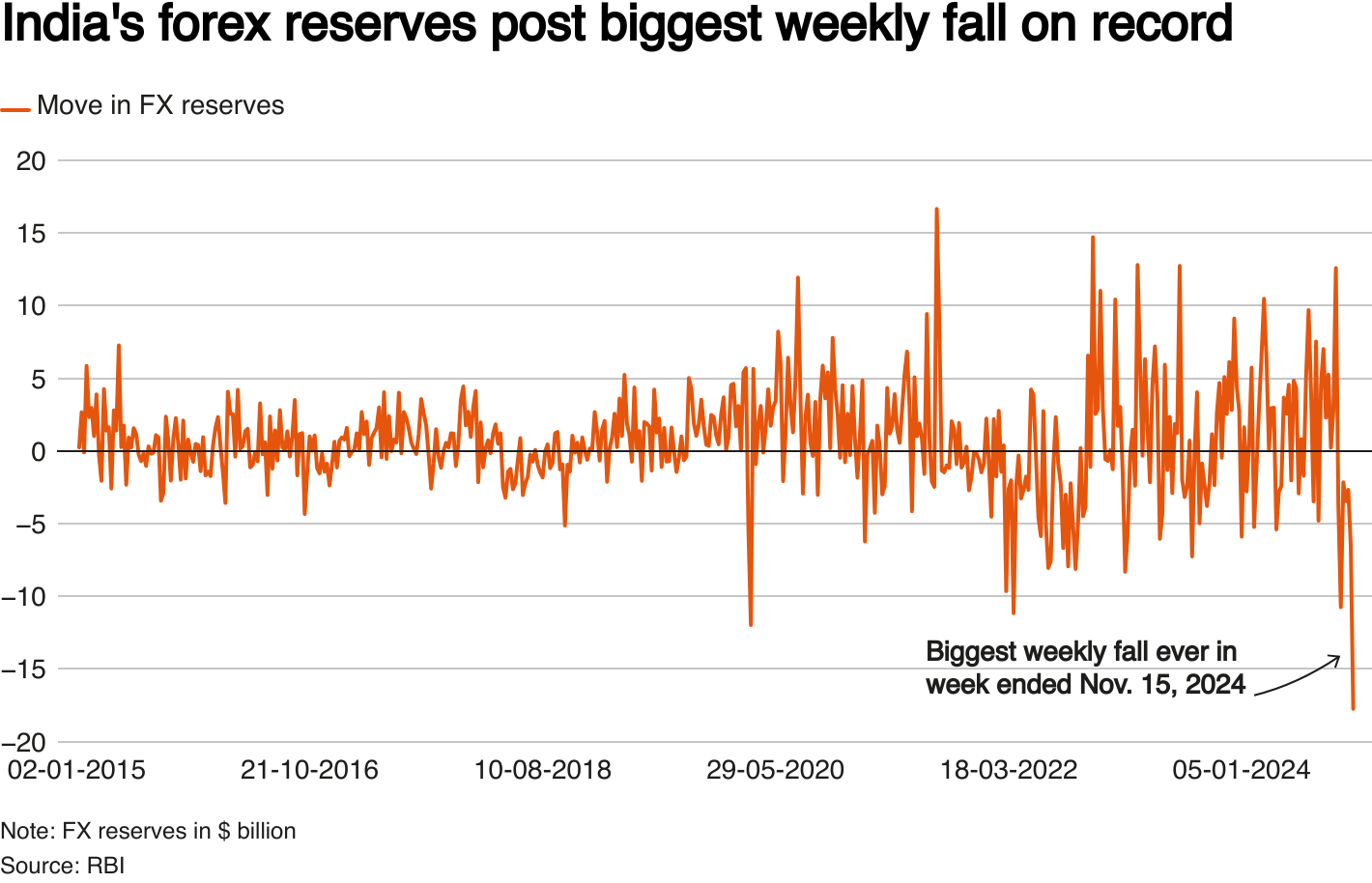 印度外汇储备创下有记录以来的最大周跌幅,降至四个月以来的最低点 | 路透社